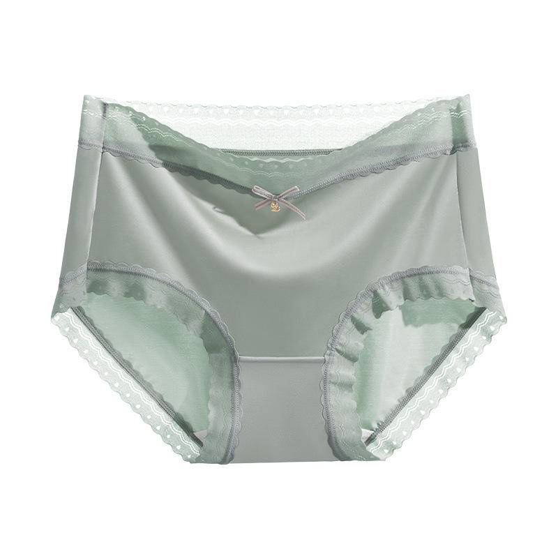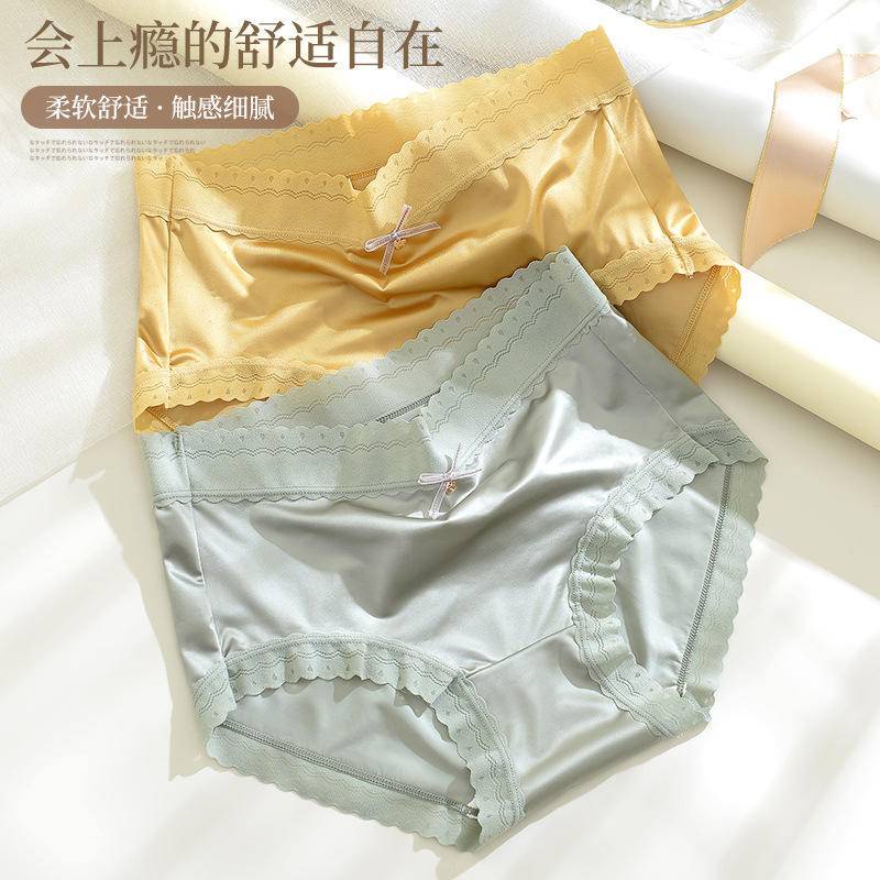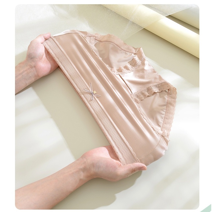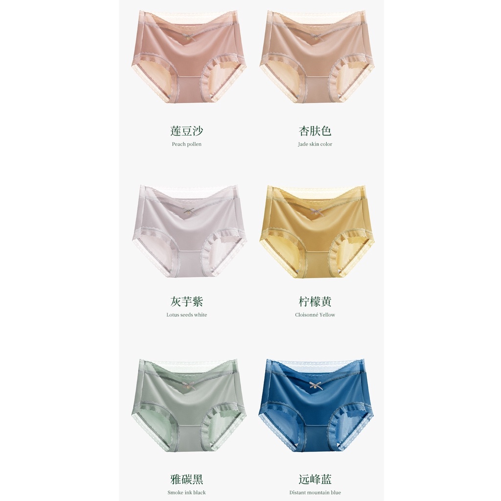 Ready Stock Panties Ladies Ice Silk Satin Mid Waist Panties Silk Girls Lace Plus Size冰丝无痕缎面蕾丝 中腰内裤b8989