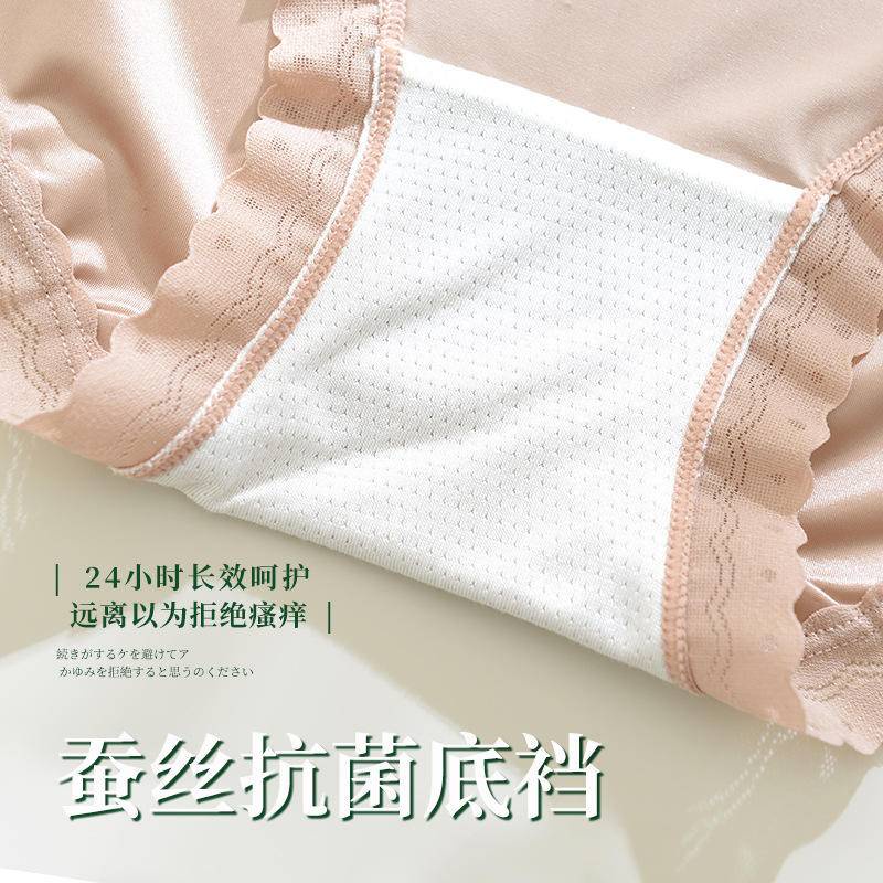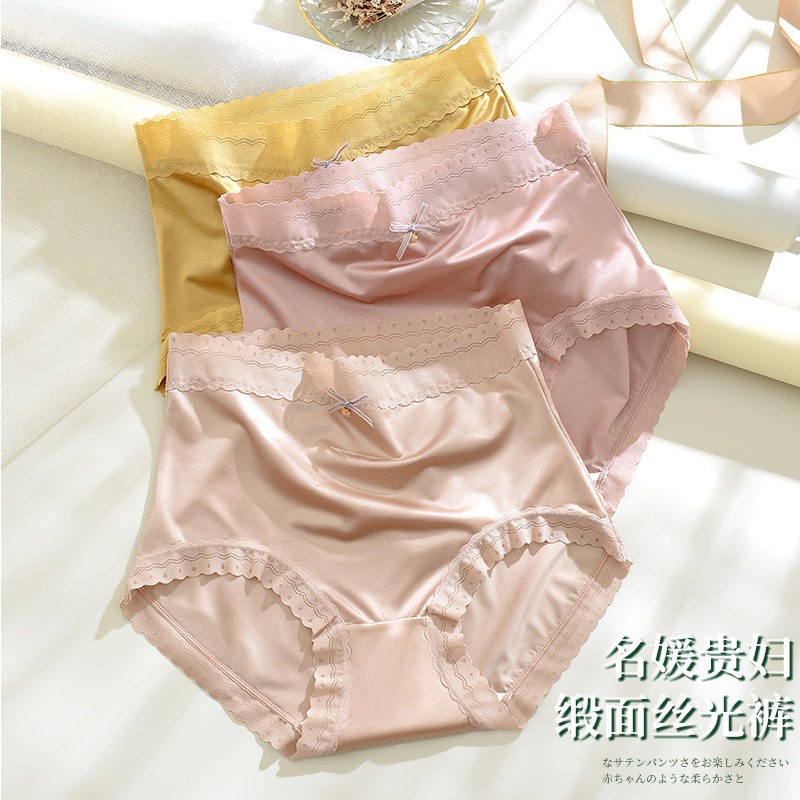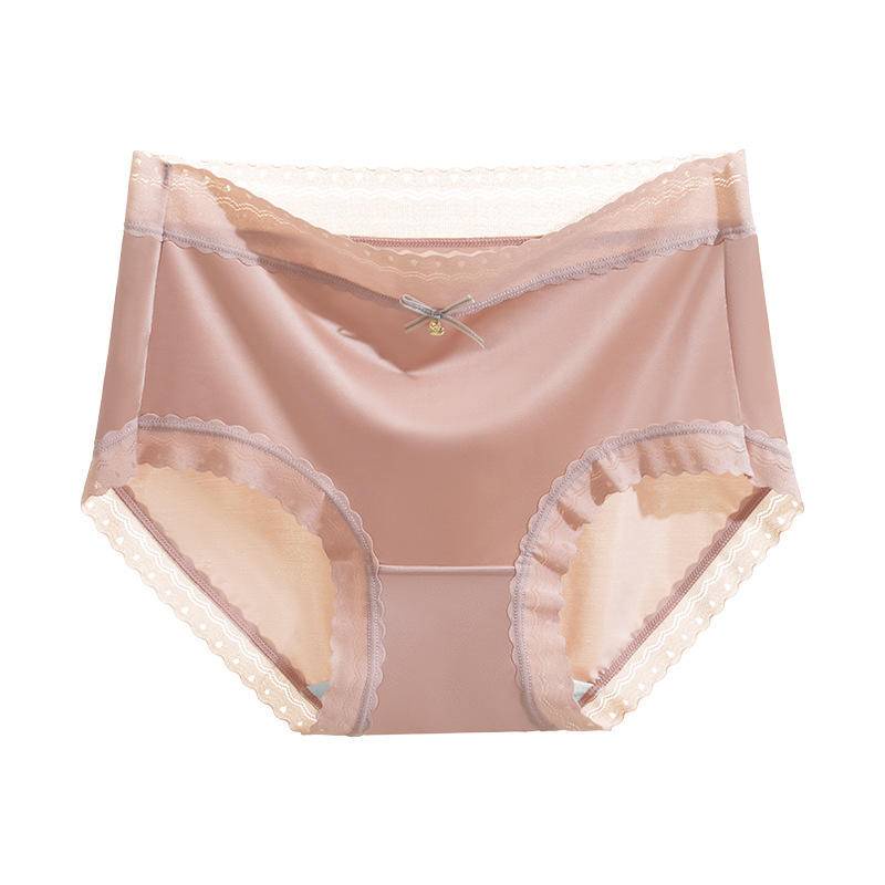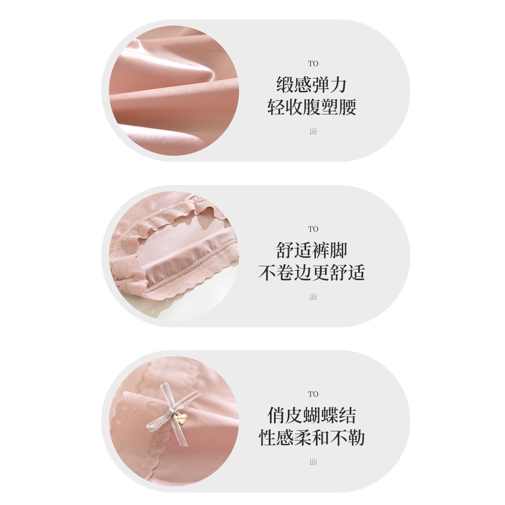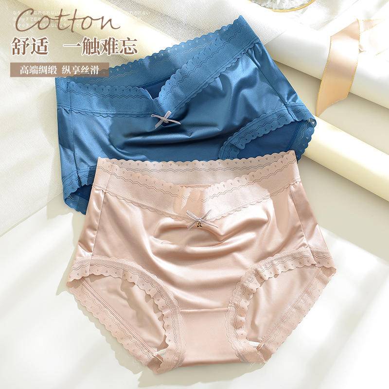 Ready Stock Panties Ladies Ice Silk Satin Mid Waist Panties Silk Girls Lace Plus Size冰丝无痕缎面蕾丝 中腰内裤b8989