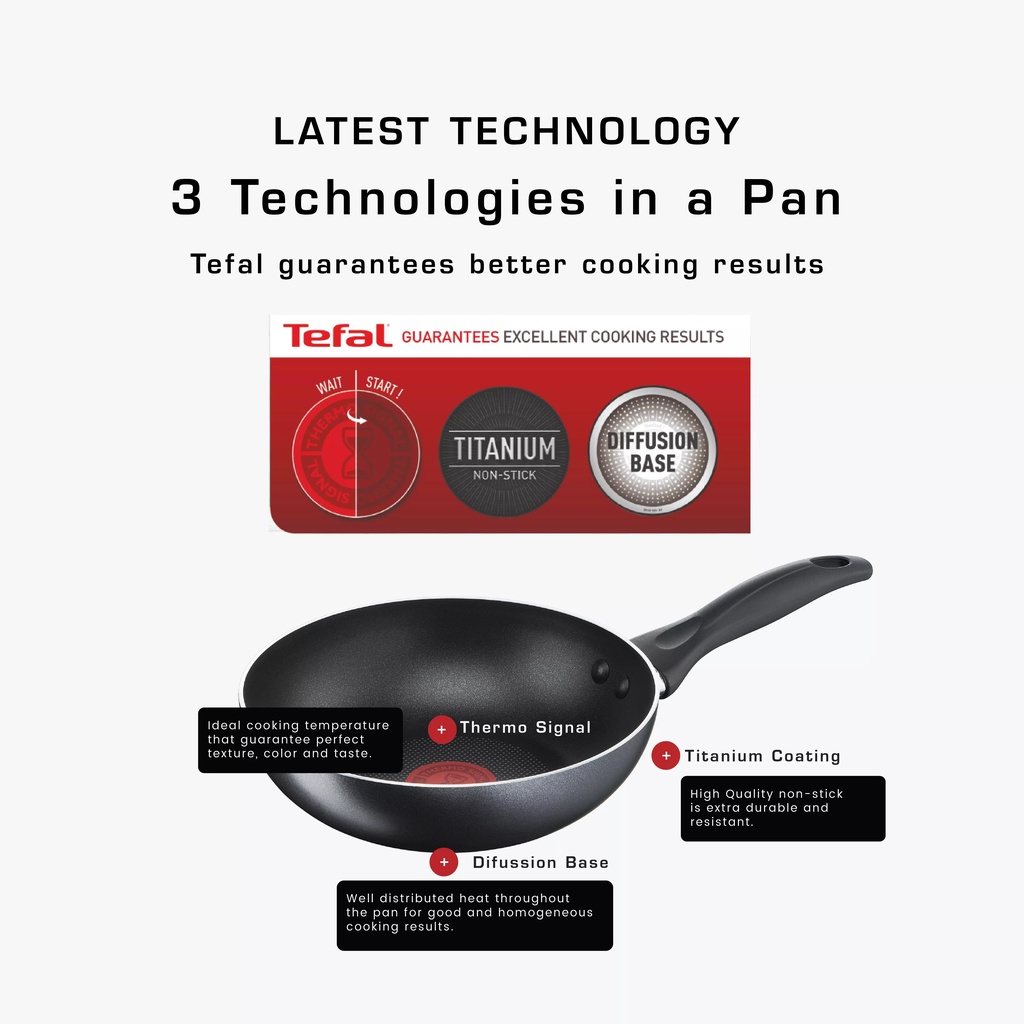 Tefal Cook & Clean 20cm/24cm/26cm/28cm/30cm Wokpan Frypan Cookware Periuk Pot Pan Wok Kuali - ODOSO