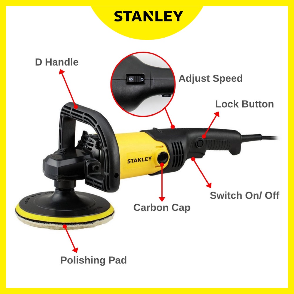 STANLEY SP137 180MM Penggilap Sander Dengan Aksesori 1300WSTANLEY SP137 180MM Sander Polisher With Accessories 1300W