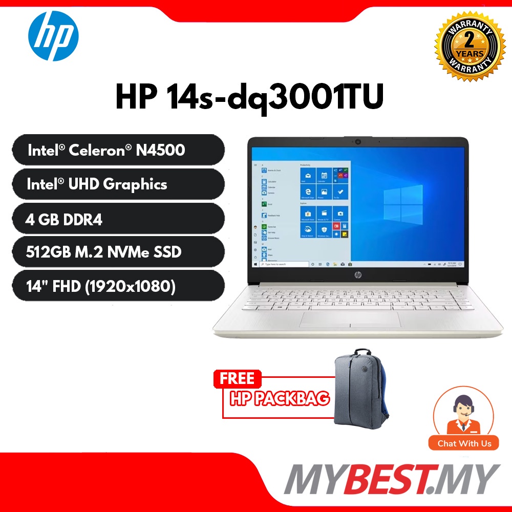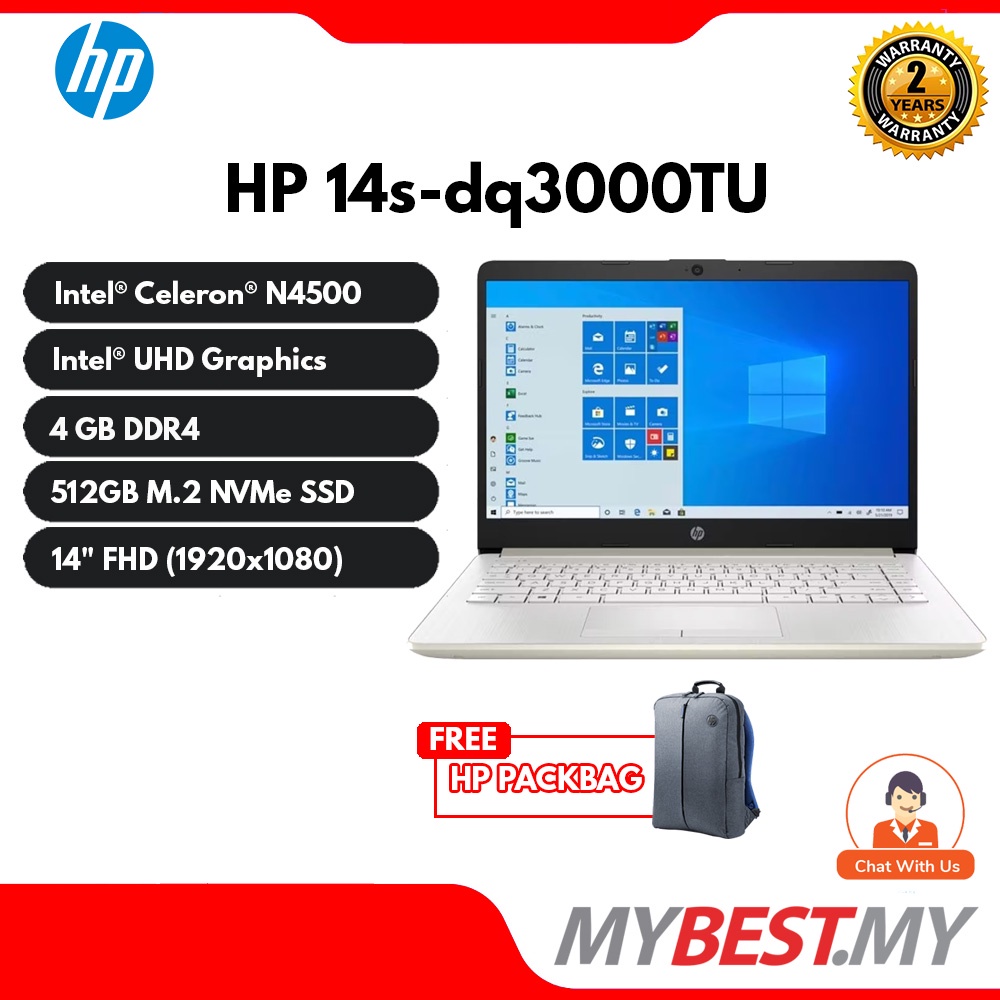 HP 14S-DQ3000TU (GOLD) / 14S-DQ3001TU (Silver) 14" LAPTOP ( Celeron N4500, 4GB, 512GB, Intel, W11 )