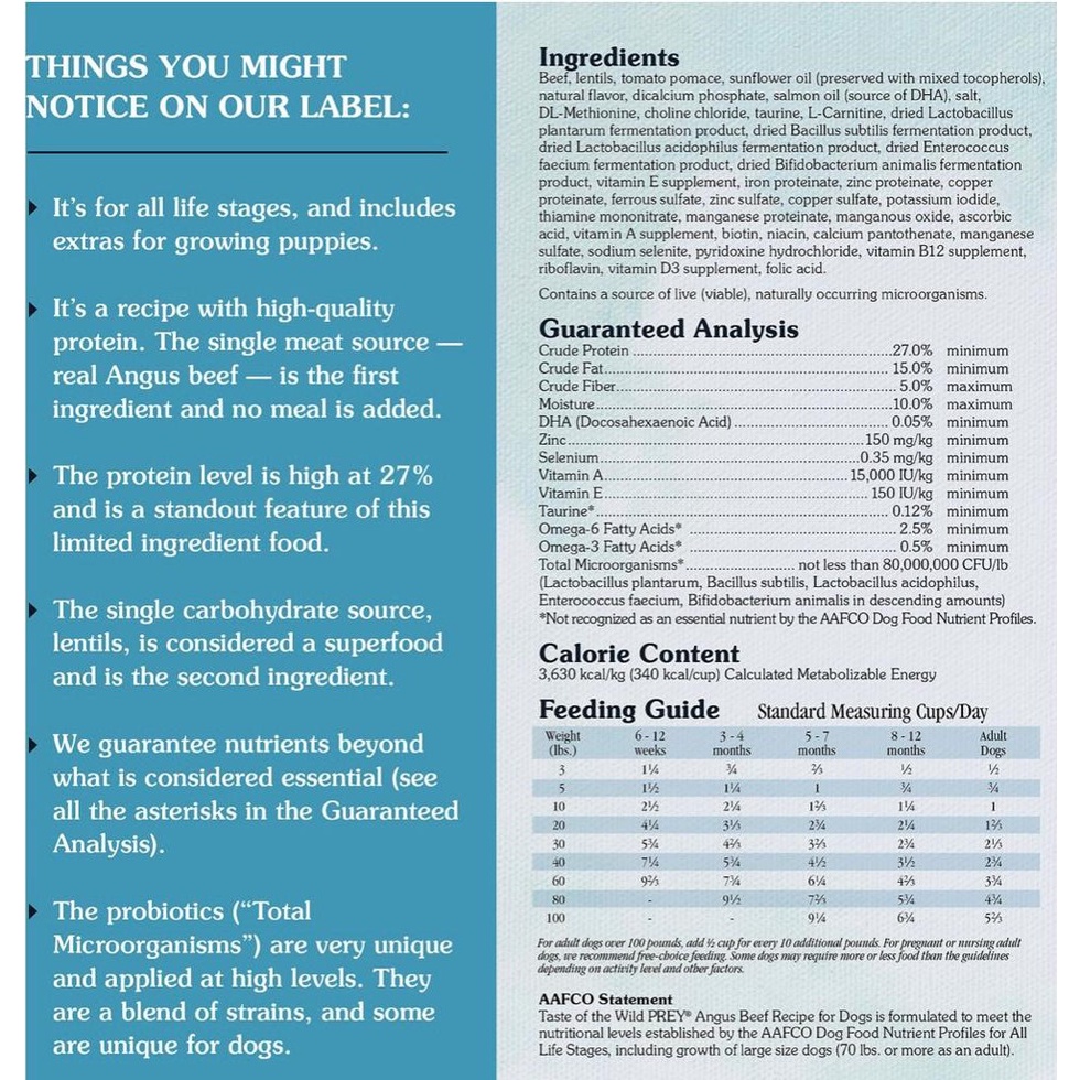 11.34kg + 3.66kg Taste of The Wild Prey Angus Beef for Dogs