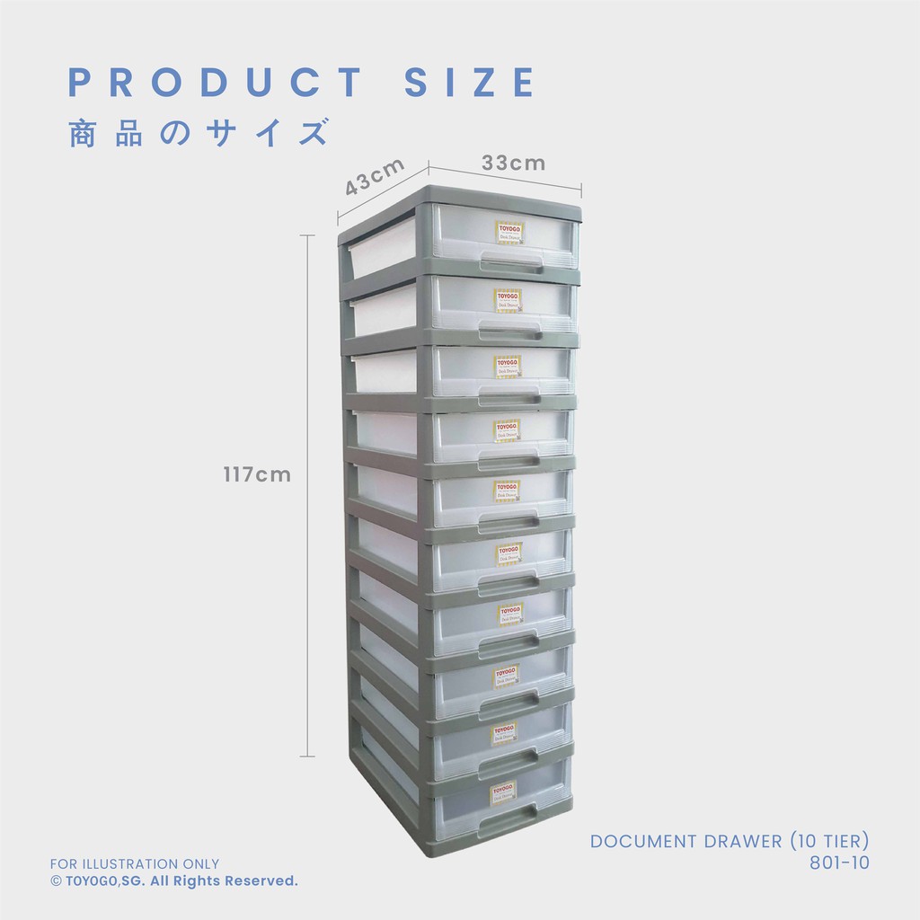 TOYOGO 10 Tiers Large Size Desktop Drawer with Wheels 801-10 (88L) [2 units]