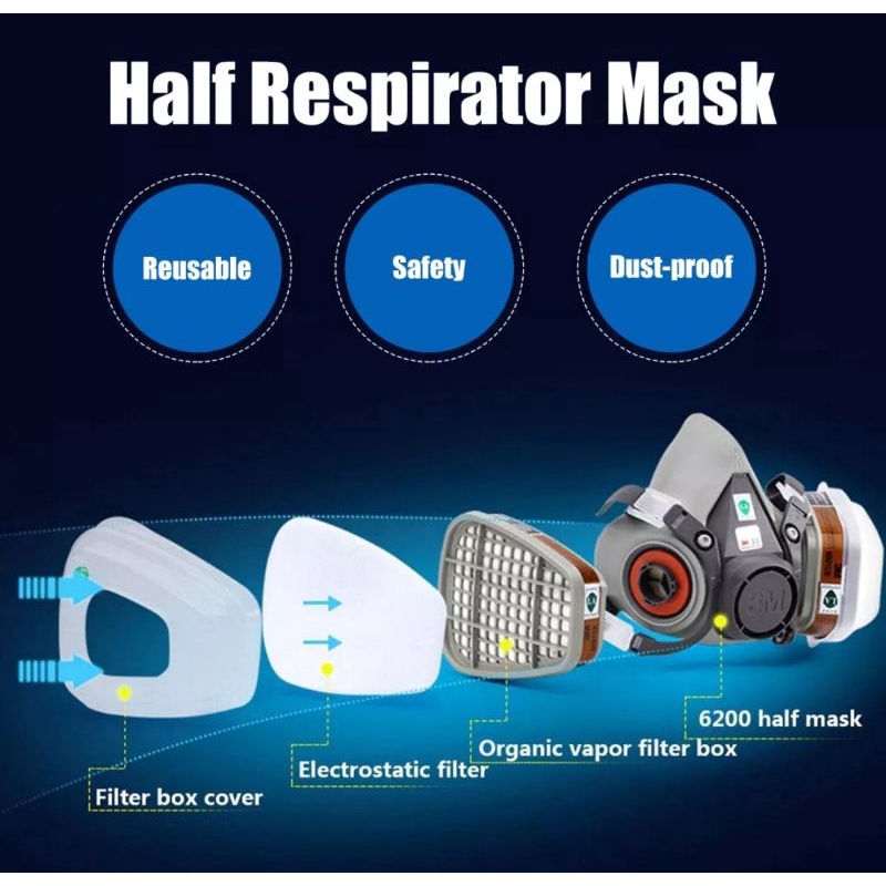 Fullset 3M Mask Respiratory 6200 7502 Half Face Respirator 5N11 Particulate Filter