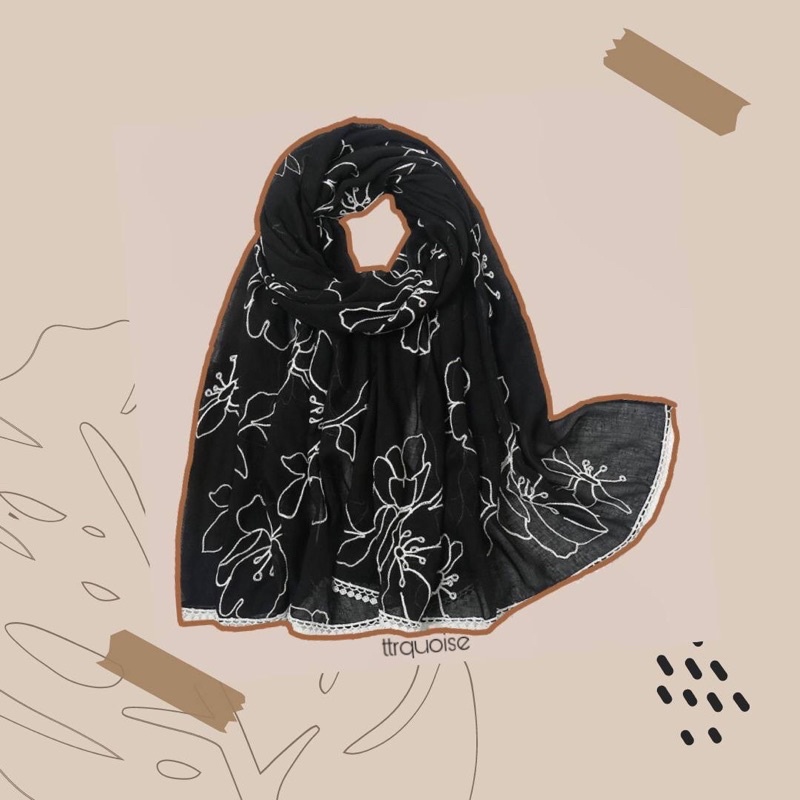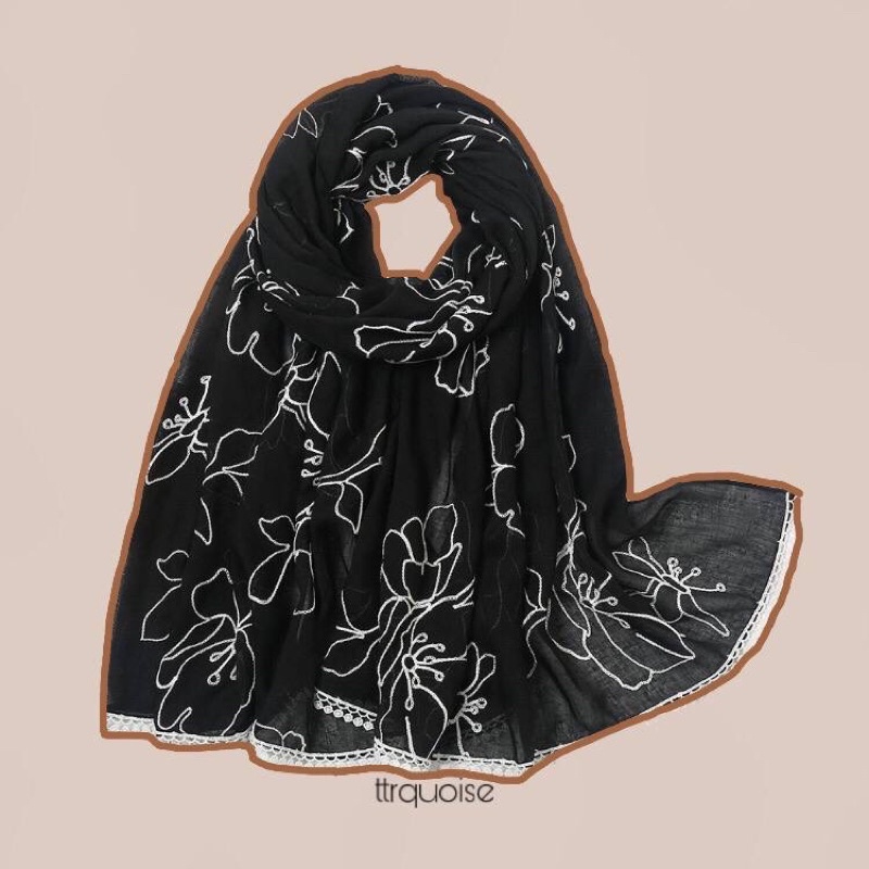 Floral Embroidery Hijabs Cotton Viscose Shawl