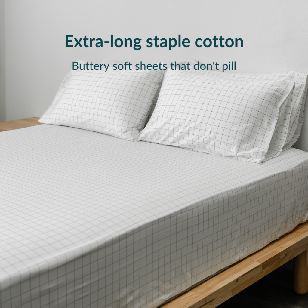 KAPAS LIVING | Fitted Bedsheet Set | 100% ELS Cotton | Bedsheet + Pillowcase | Single /Queen/King/Sk