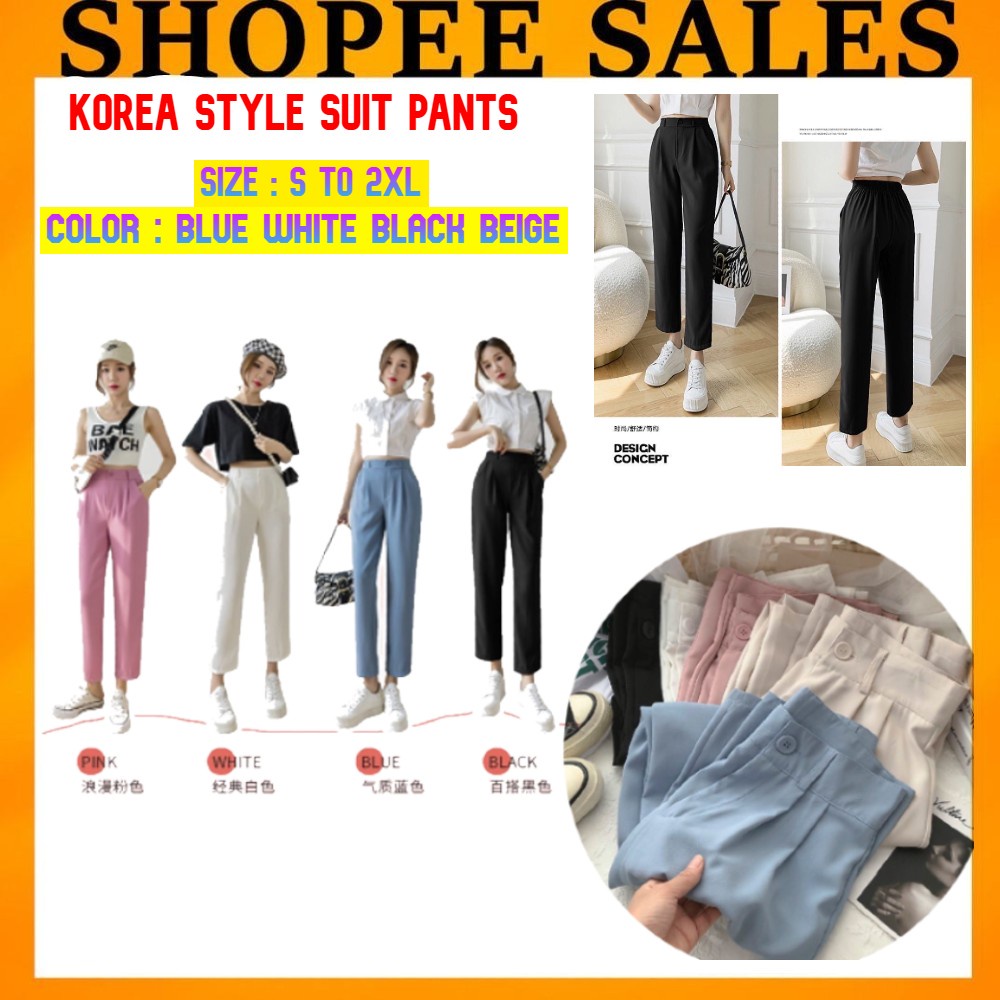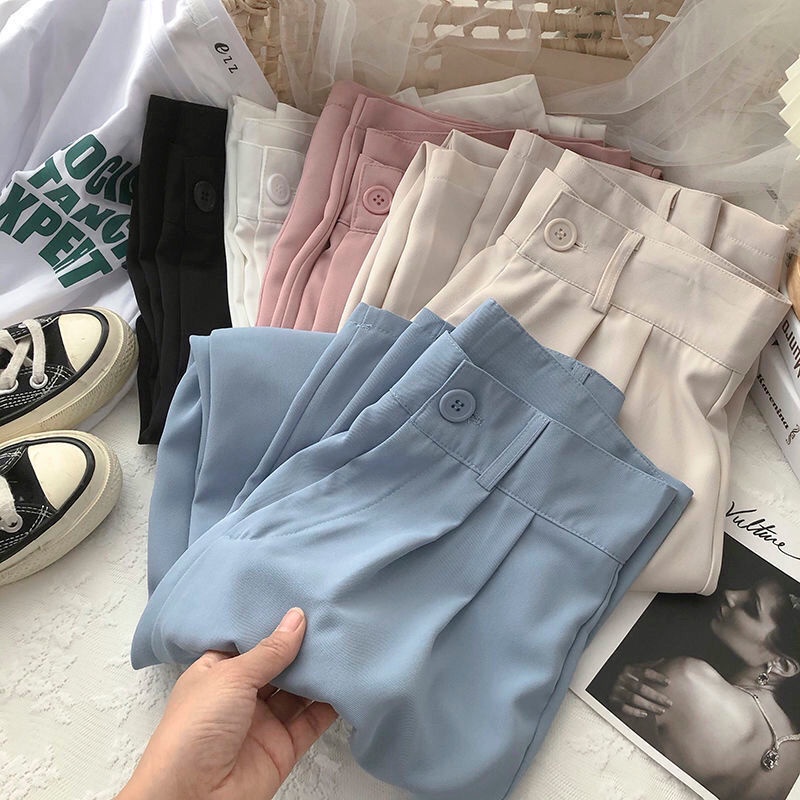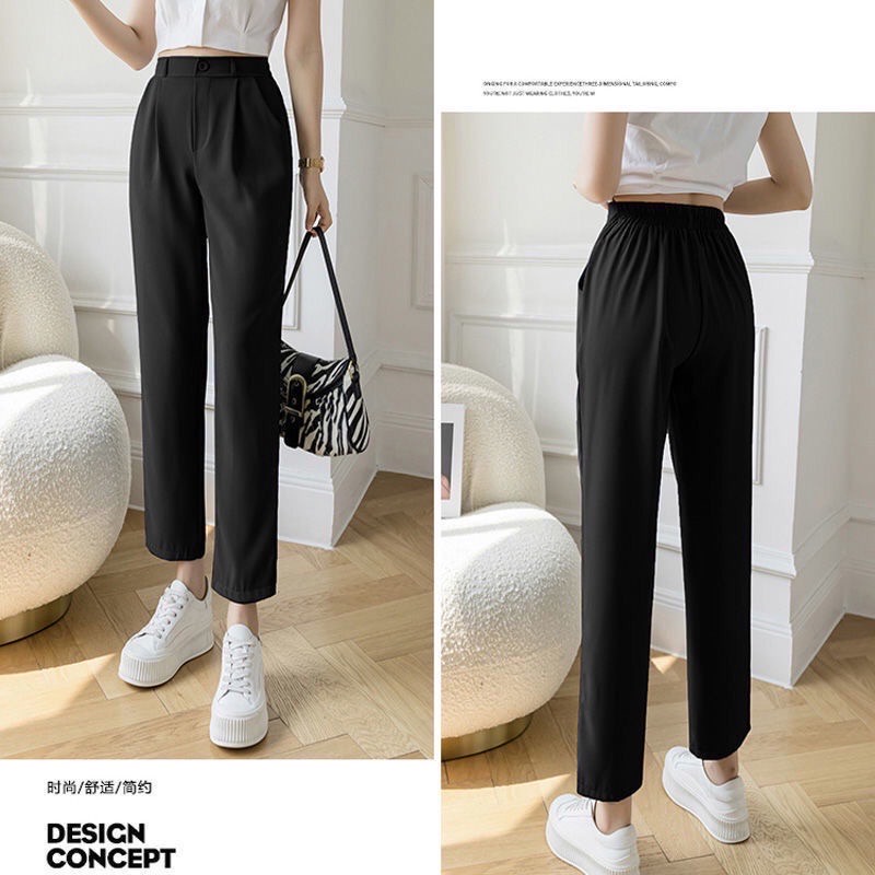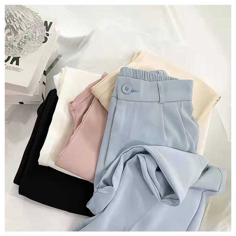 #Readystock Women casual pants straight nine-point suit pants casual high waist loose pants slimming seluar wanita
