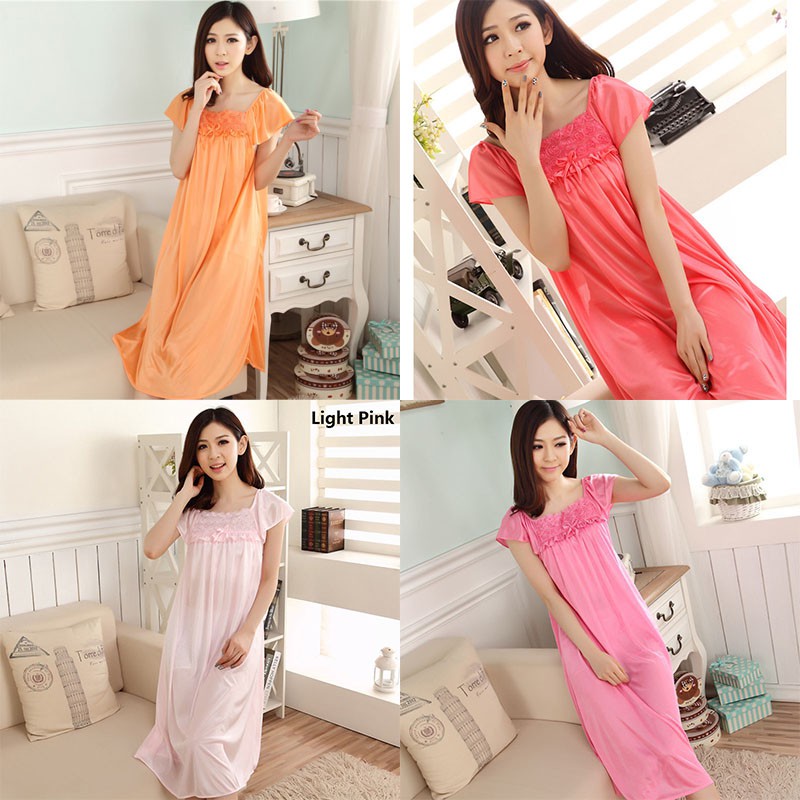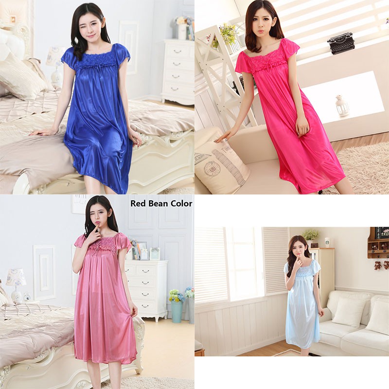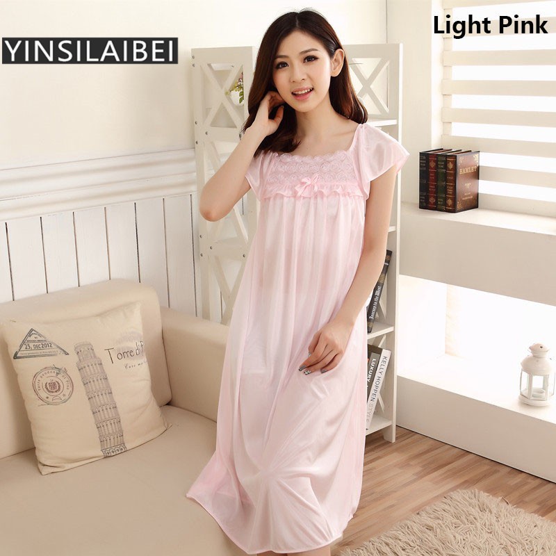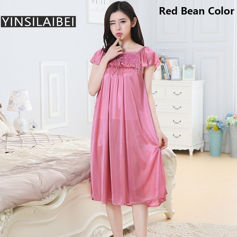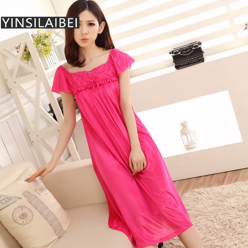 Summer Sexy Ice Silk Satin Night Dress Women's Nightwear Sleepwear Plus Size Female Night Shirts Home Clothing for Ladies