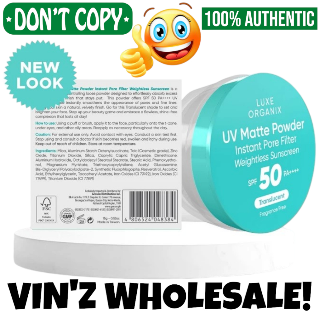 LUXE ORGANIX UV Matte Powder (SPF50) Instant Pore Filter Translucent Weightless Sunscreen 15g.