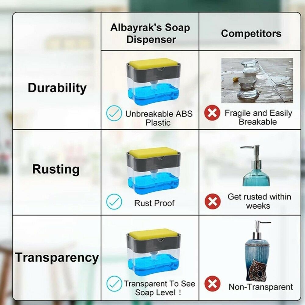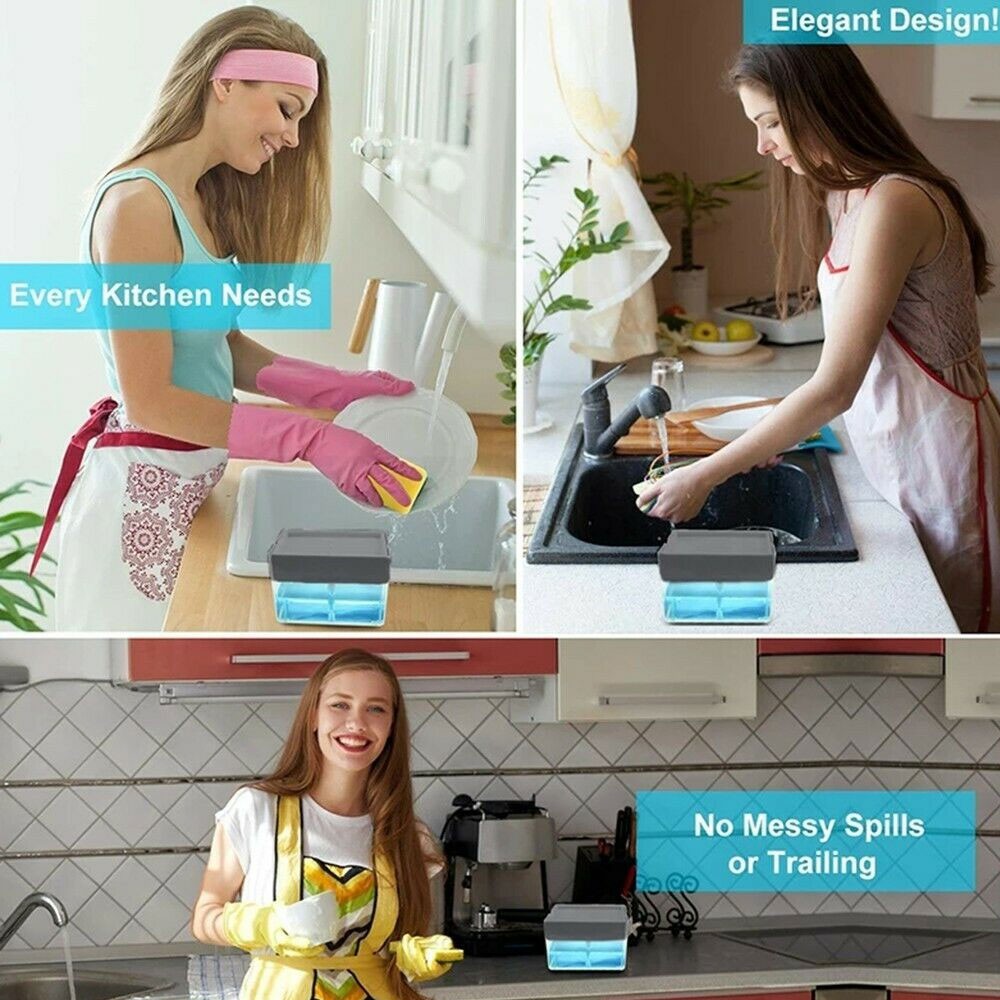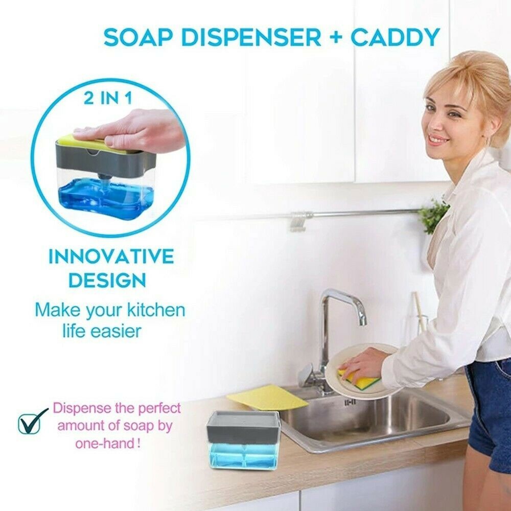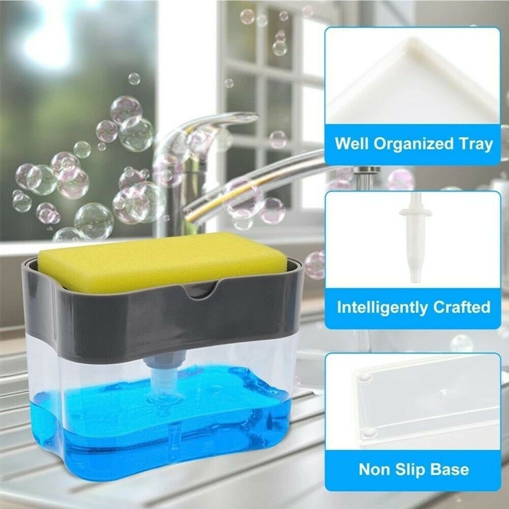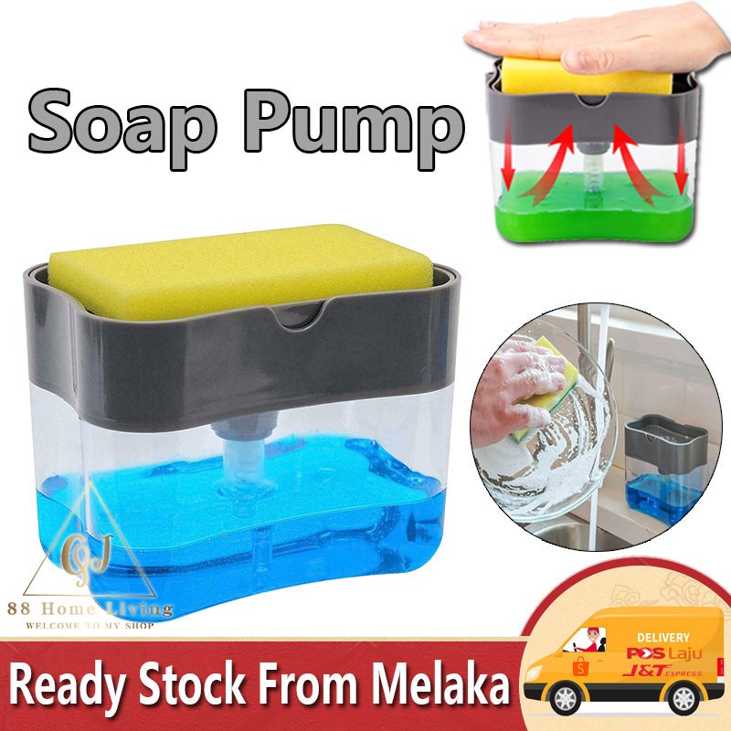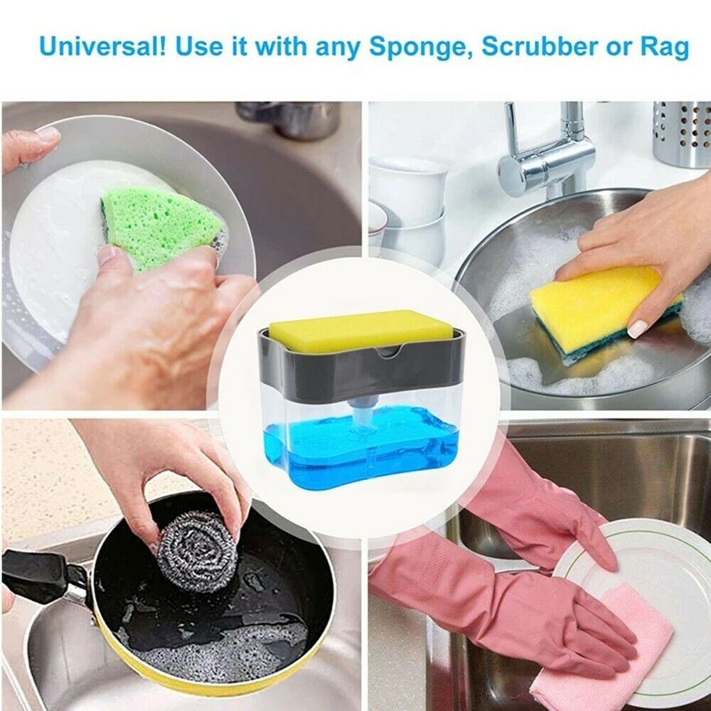Soap Dispenser With Sponge Holder 2 in 1 Kitchen Soap Pump Dishwash Pump Bekas Sabun 按压洗碗肥皂盒 洗碗工具