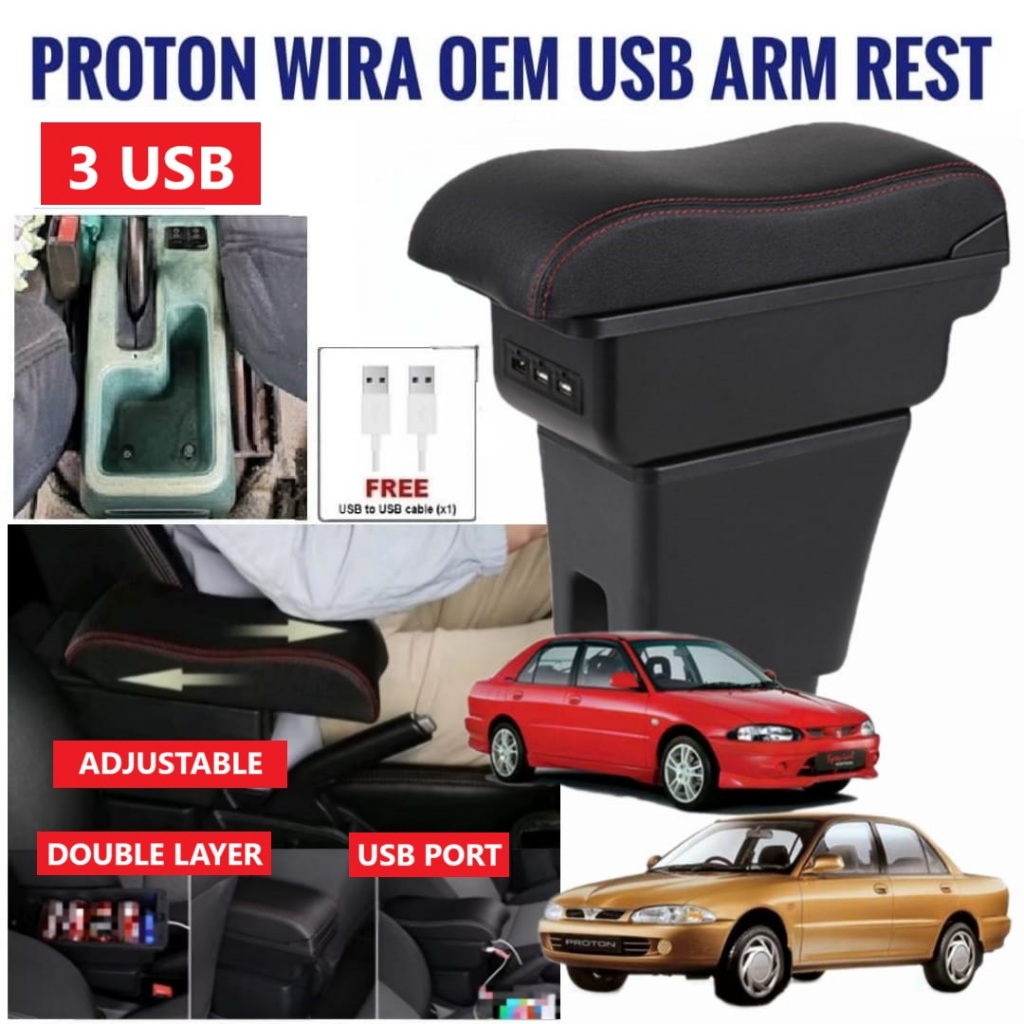 Car Armrest Wira USB Arm Rest Console Cup Storage Box Organizer Seat Gap Filler Cushion Pad Kereta