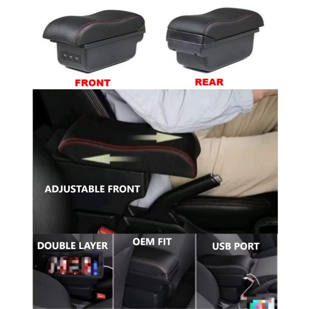 Car Armrest Saga Blm USB Arm Rest Storage Box Organizer Seat Cushion Console Box Cup Holder Kereta