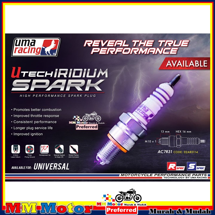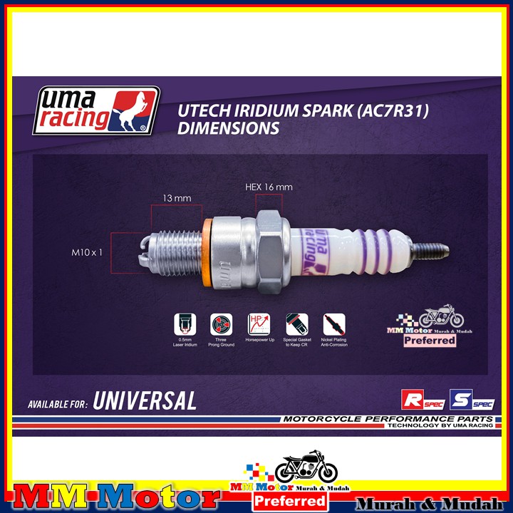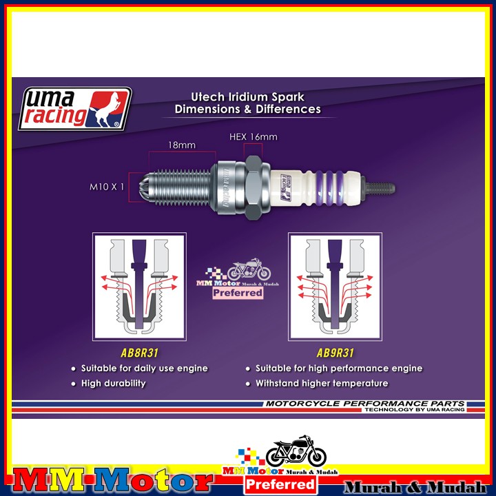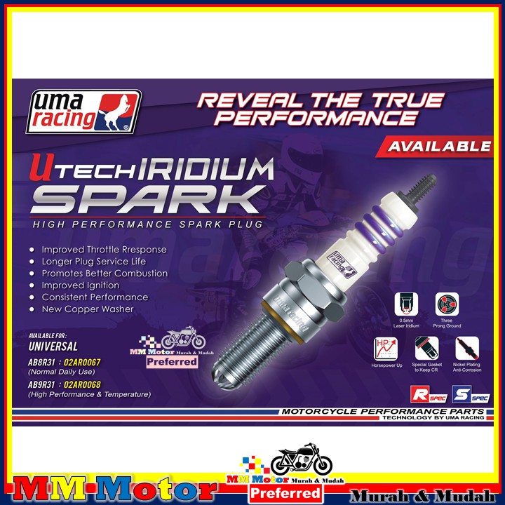 UMA RACING U TECH IRIDIUM HIGH PERFORMANCE SPARK PLUG AB8R31 AB9R31 AC7R31 UNIVERSAL YAMAHA HONDA LC135 Y15ZR NMAX RS150
