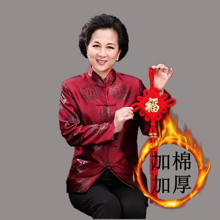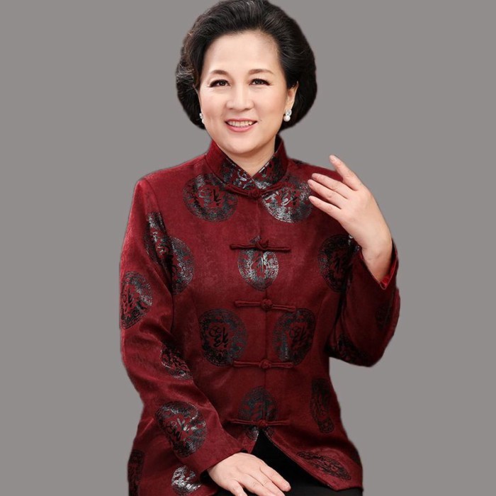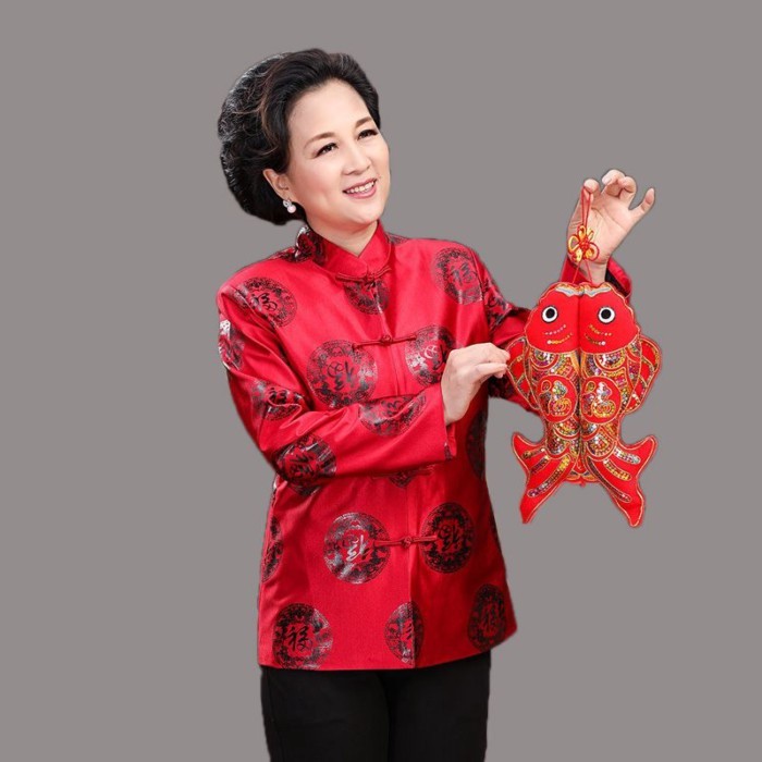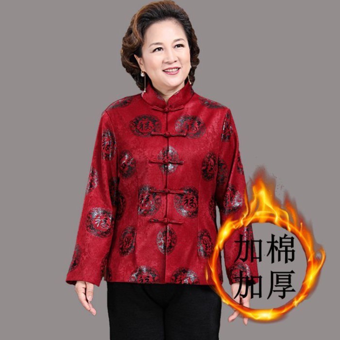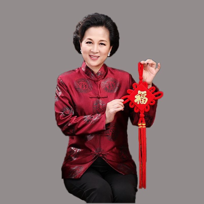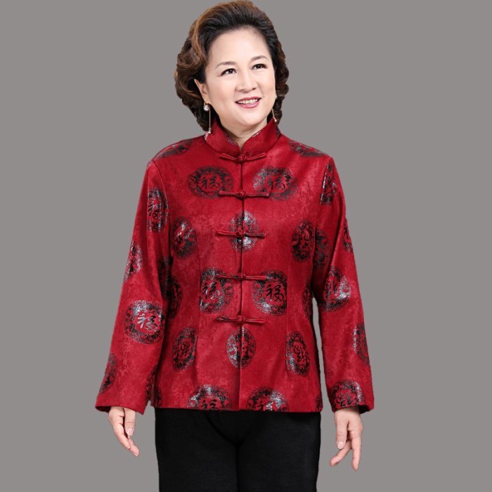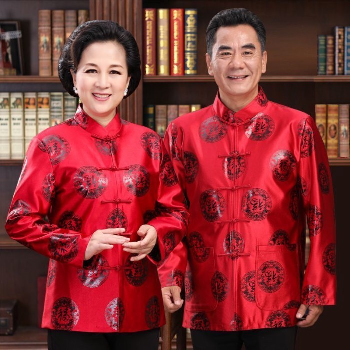Red Satin Tang Suit with Blessing Characters - Buttoned Coat for Celebrating Birthday Events