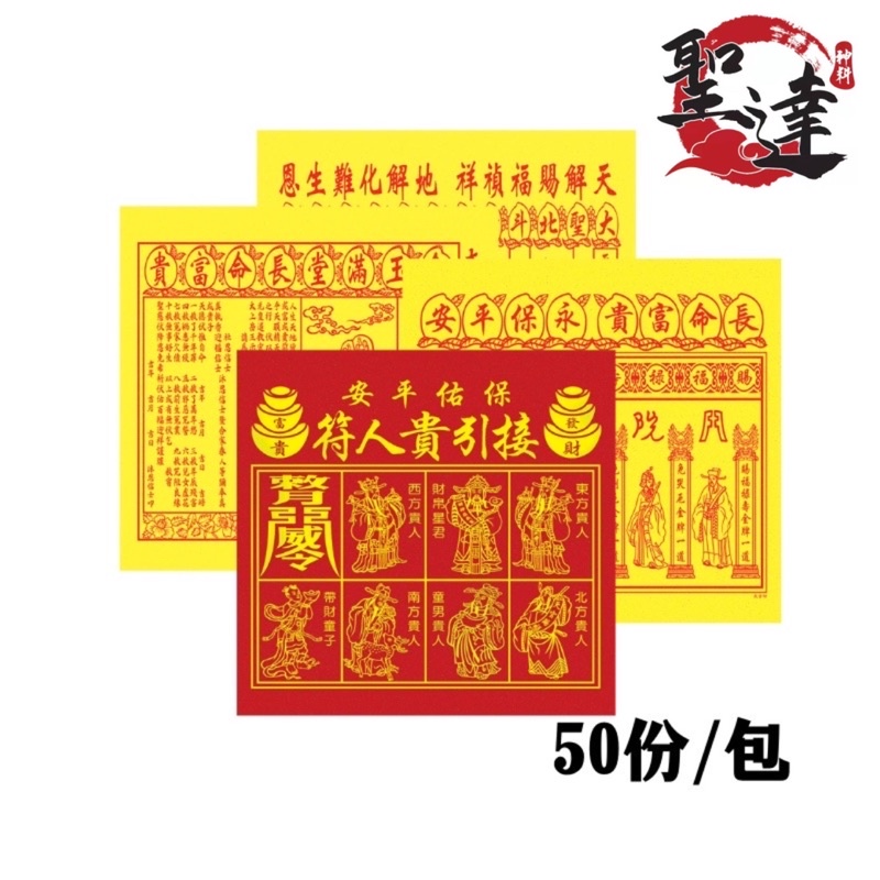 【聖达】天宫坊 烫金四色贵人符 贵人纸 每包50付 贵人符系列