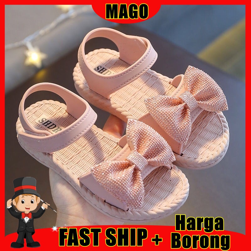 **Size24-38**Ready Stock!! Mago Kids Girl Ribbon Princess Baby Fashion Sandals Casual Beach Slippers Sandal budak(A33)
