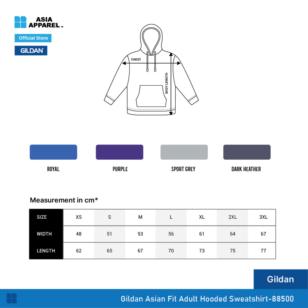 Gildan Asian Fit Adult Hooded Sweatshirt 88500 GROUP B