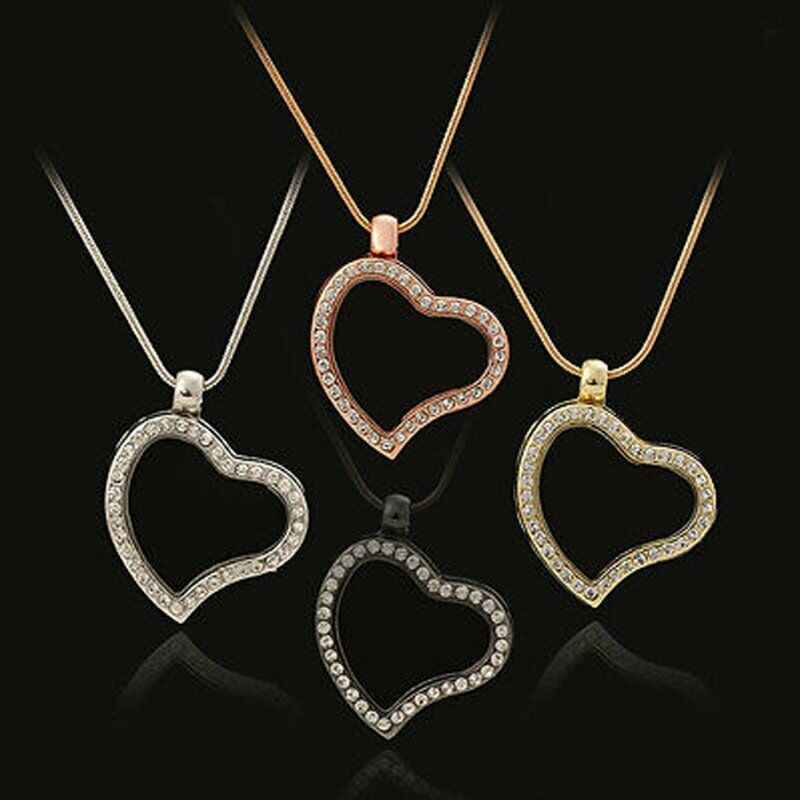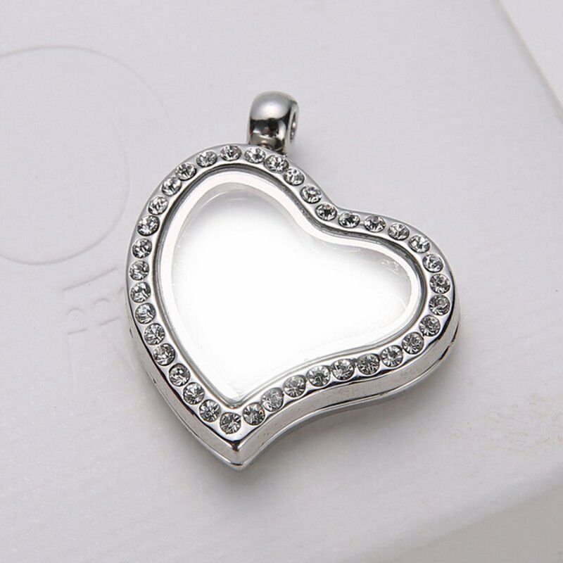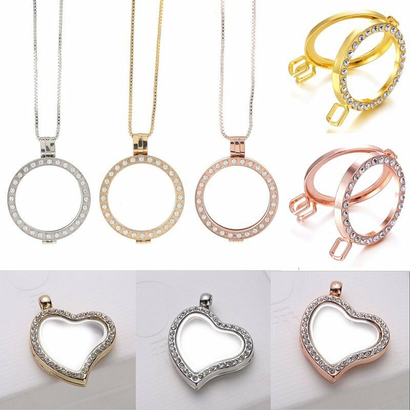DIY Living Memory Floating Round Heart Locket Pendant Necklace Charm Holder Gift