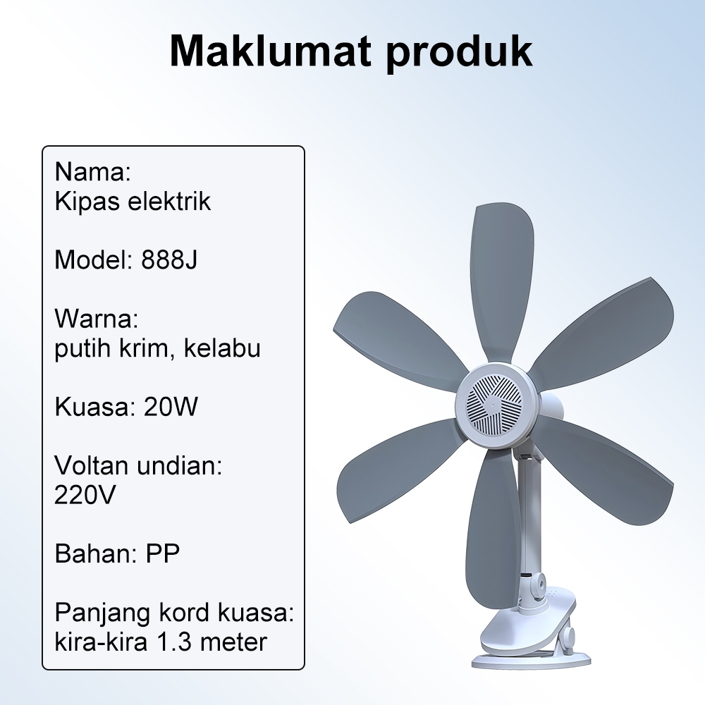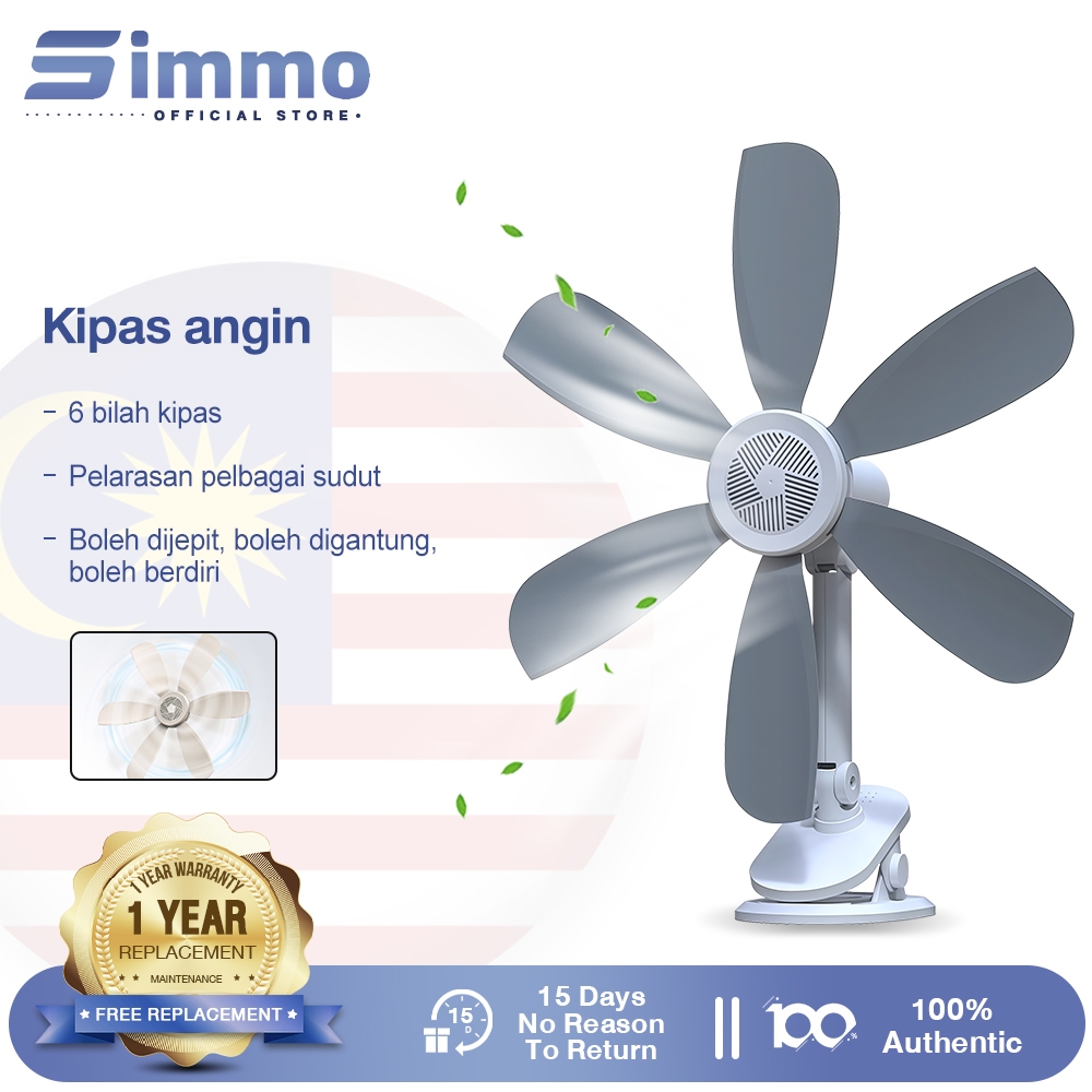 Simmo Clip Fan 3in1 Portable Mini Fan 6 Soft Blades Adjustable Wall Fan Kipas Meja Desktop Fan Mini Electric Leaf Fan