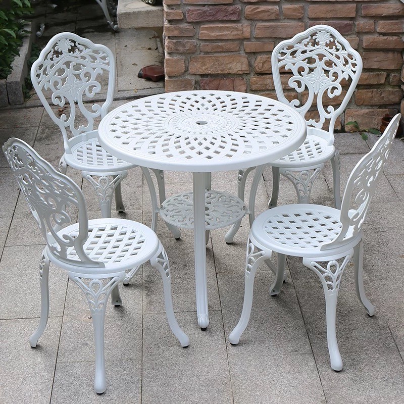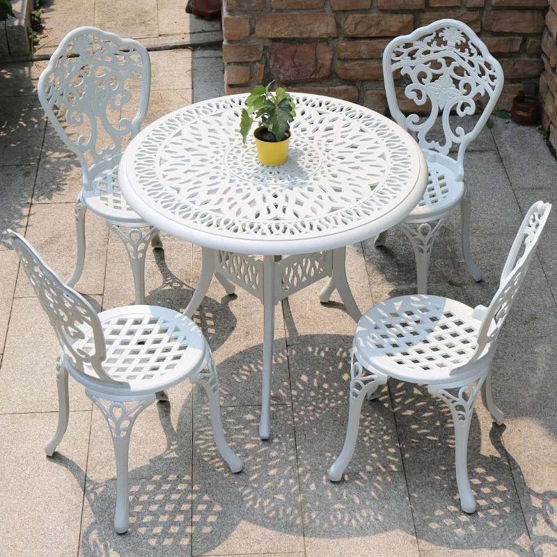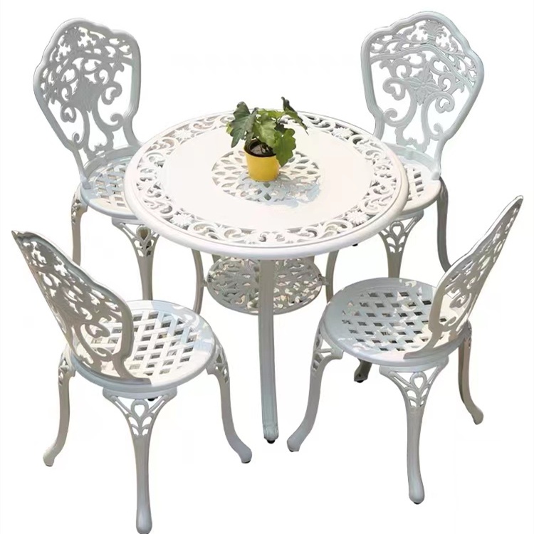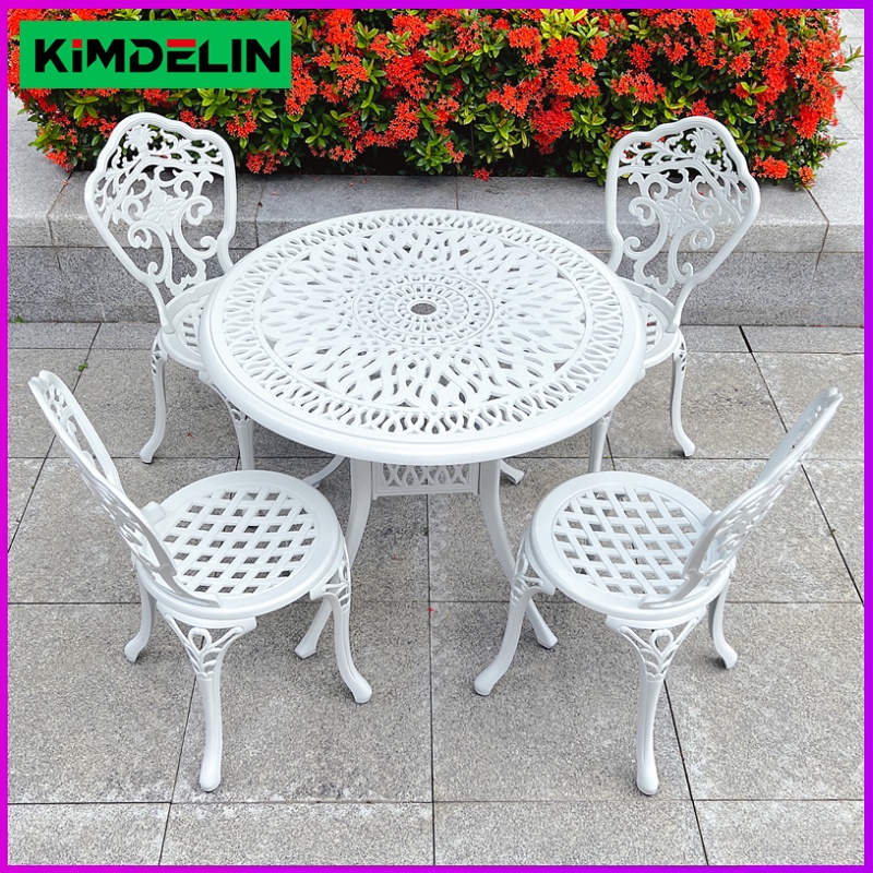 KIMDELIN Outdoor Furniture Patio Cast Aluminum Dining Table and 4Chairs