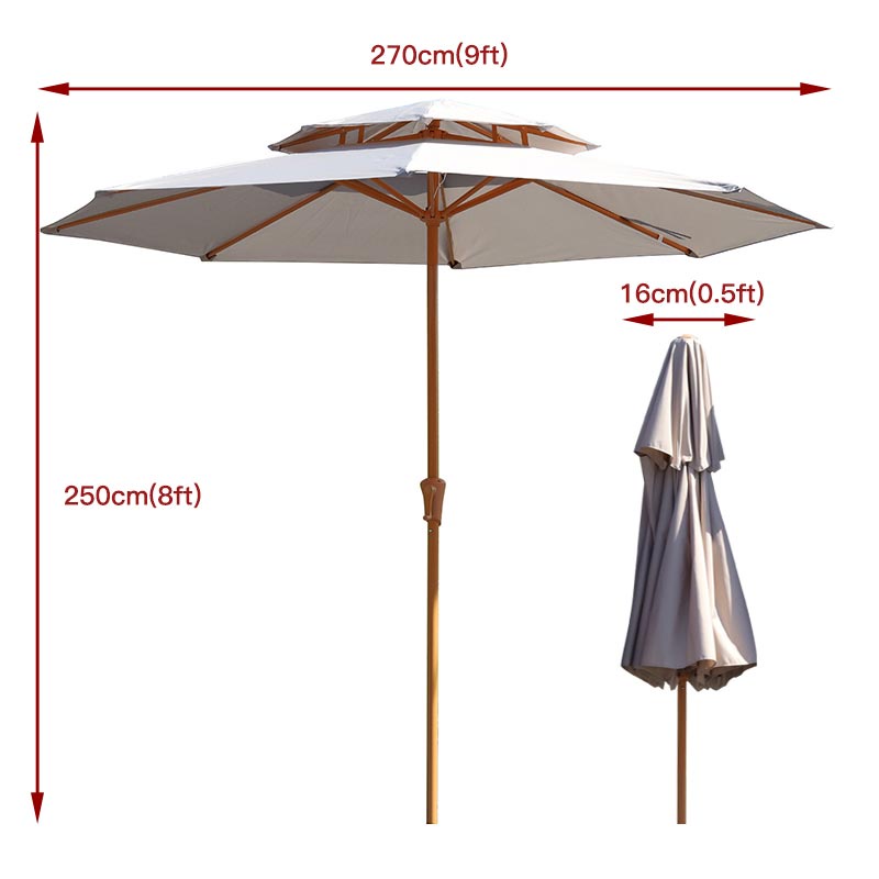 【KIMDELIN】 2.7M Garden Sunshade Double Layer Umbrella For Outdoor,Garden ,Yard(Not included Base)