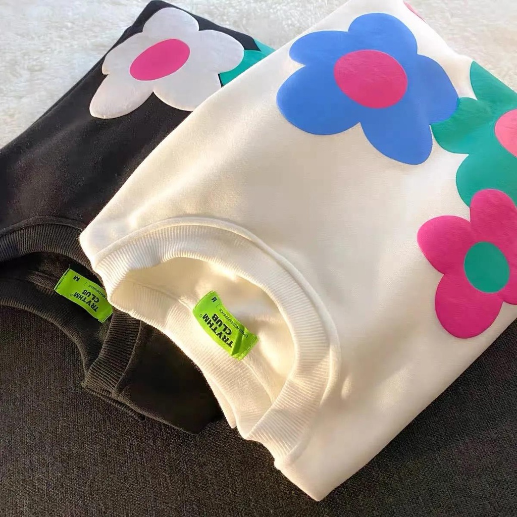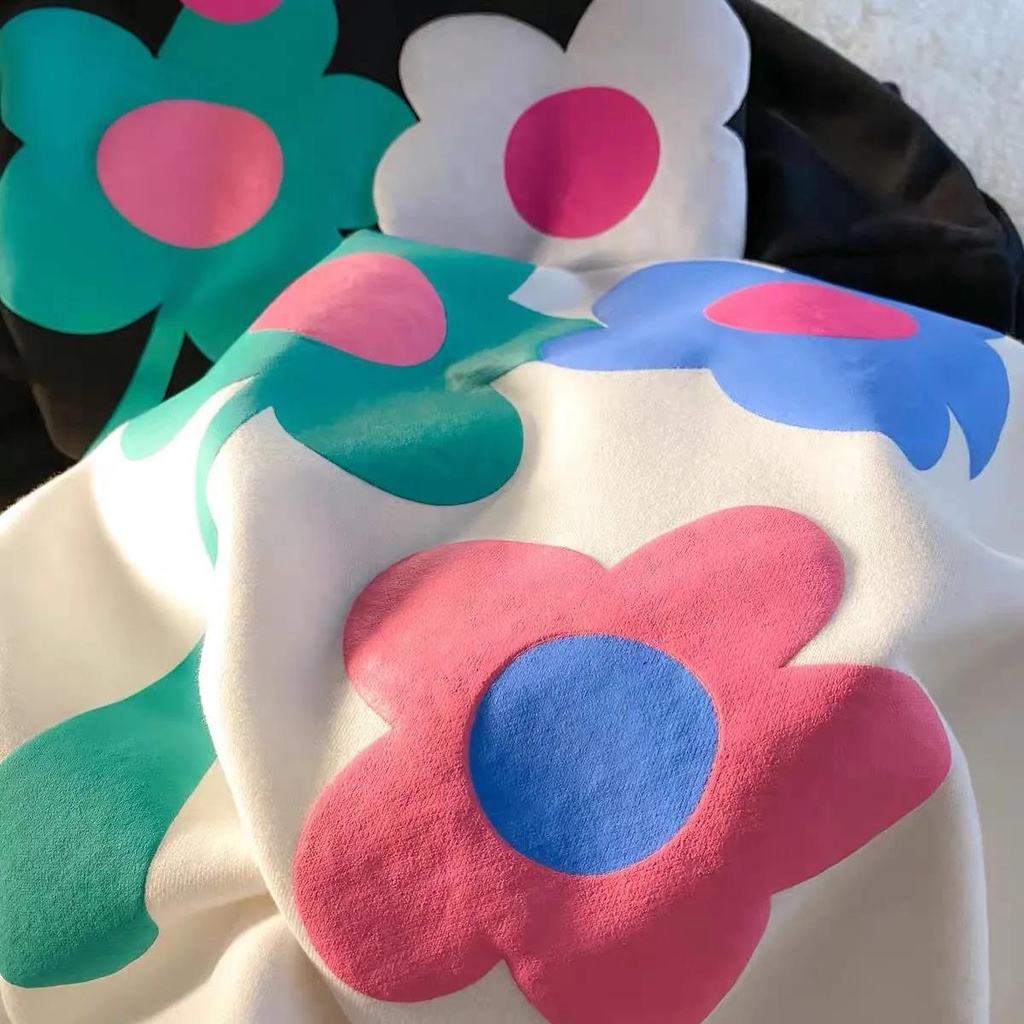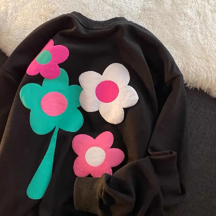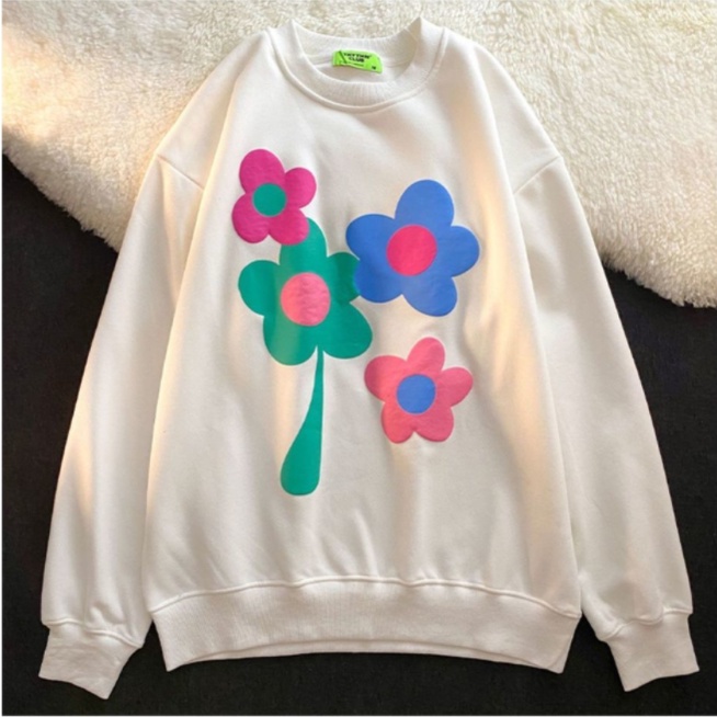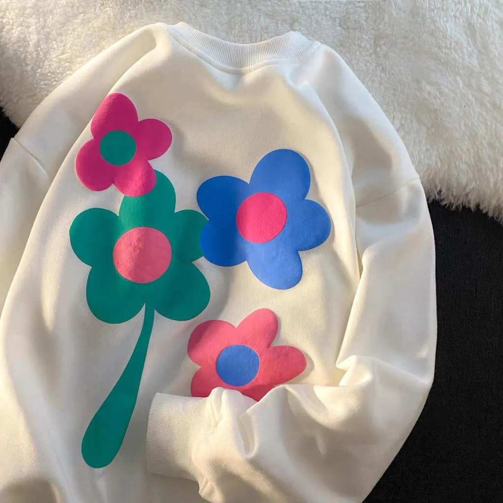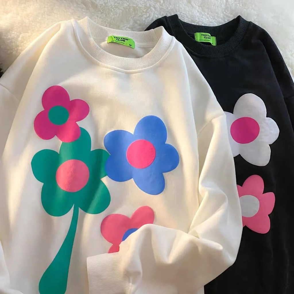 Retro Oversized Printed Round Neck Sweatshirt Women's Thin Section Loose Student All-match Pullover Top