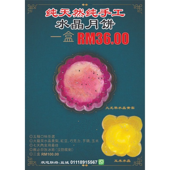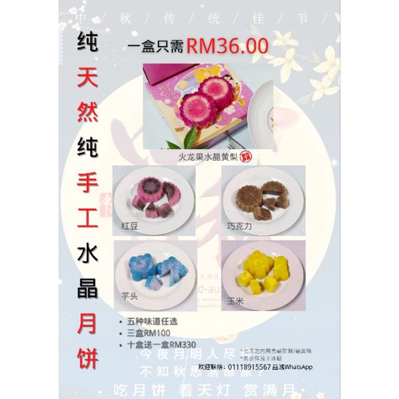 纯天然纯手工水晶月饼unmixed natural and handwork crystal mooncake(only KL,Selangor)