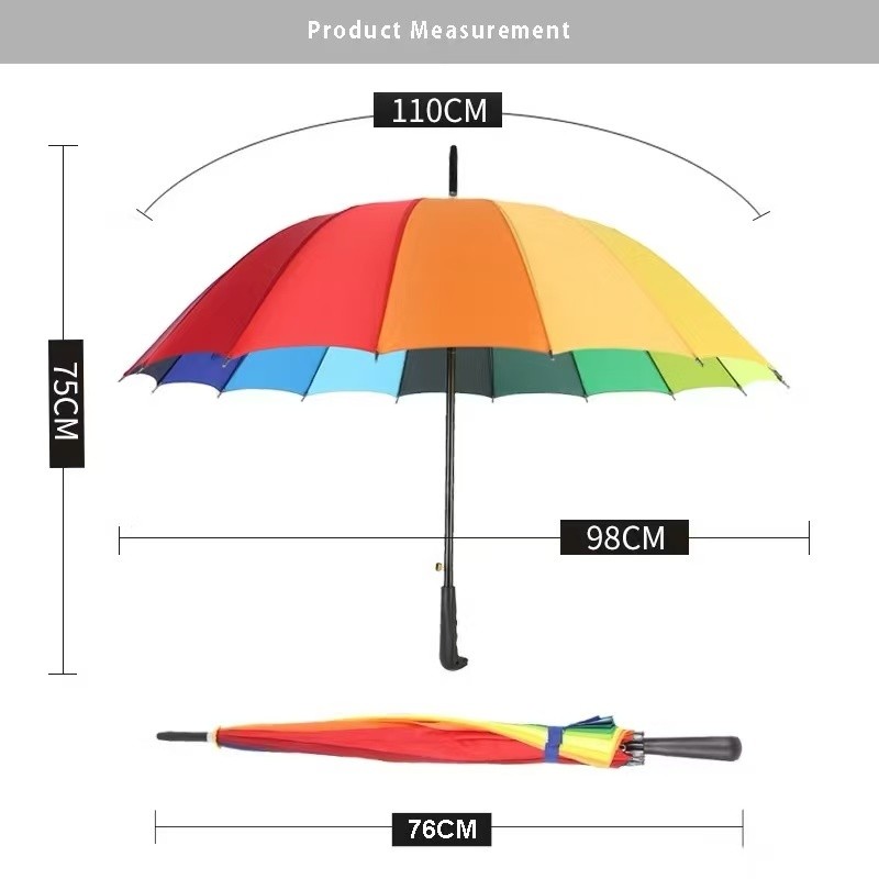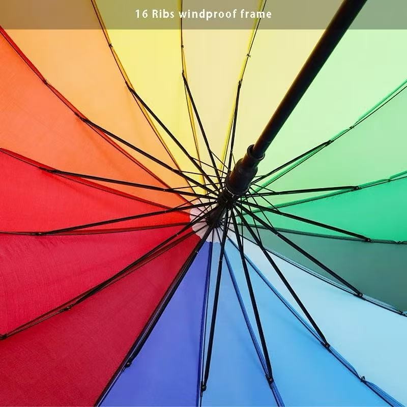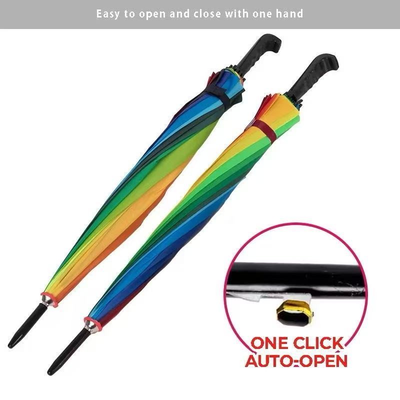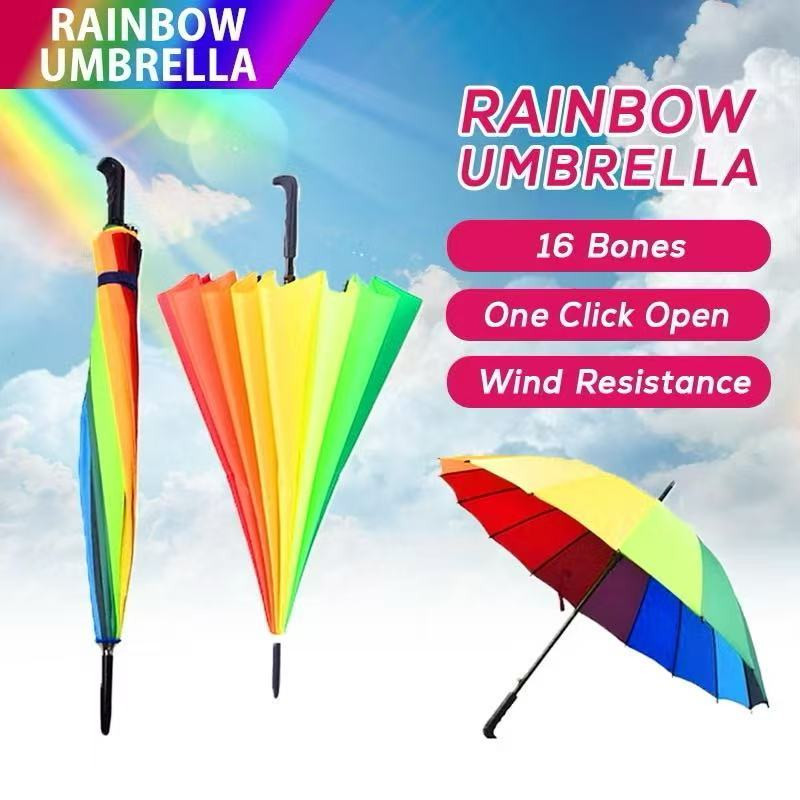 SF_《𝗪𝗜𝗡𝗗𝗣𝗥𝗢𝗢𝗙》Long Handle Rainbow Auto Umbrella One Click Open 16 Rib Large Canopy Anti UV Golf Umbrellas Payung 雨伞