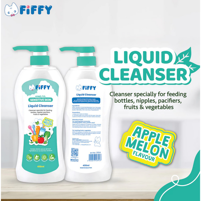 FIFFY Baby Bottle Wash Liquid Cleanser Green Tea Apple Melon Sabun Pencuci Botol