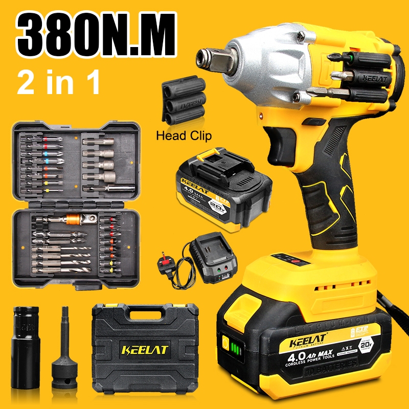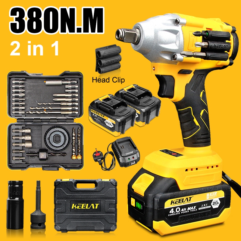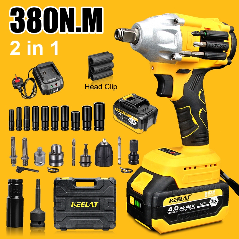 KEELAT KID001S Impact Wrench Cordless 20V 4Ah Battery 380N.m 1/2 in Electric Impact Gun 1/4 " Screwdriver Drill Driver
