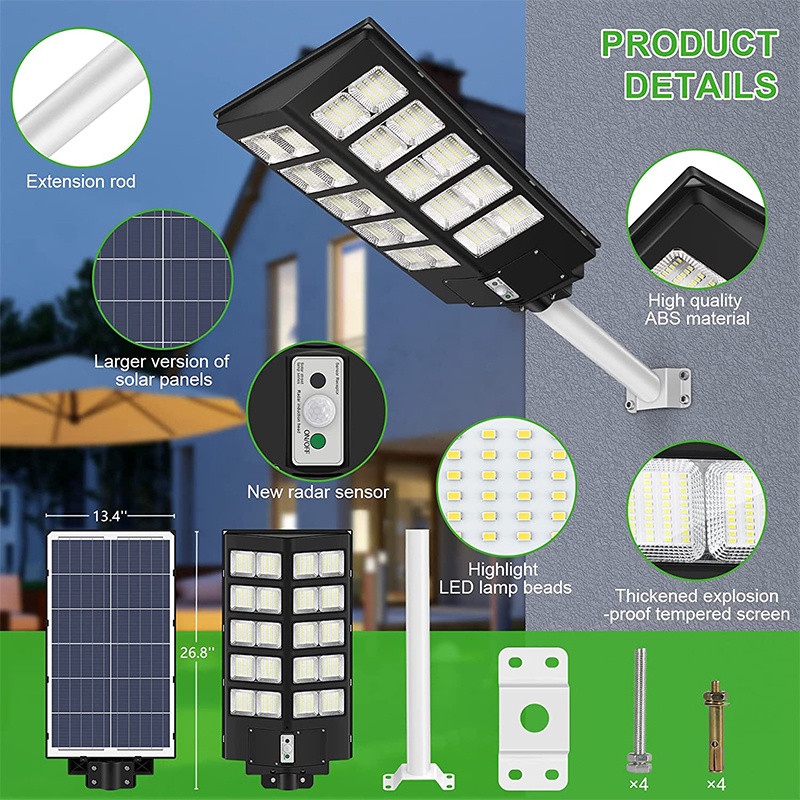 KEELAT 800W 1000W 1200W Solar Street Light Solar Light Remote Control Wall Lamp Solar Light Outdoor Lighting Ip67