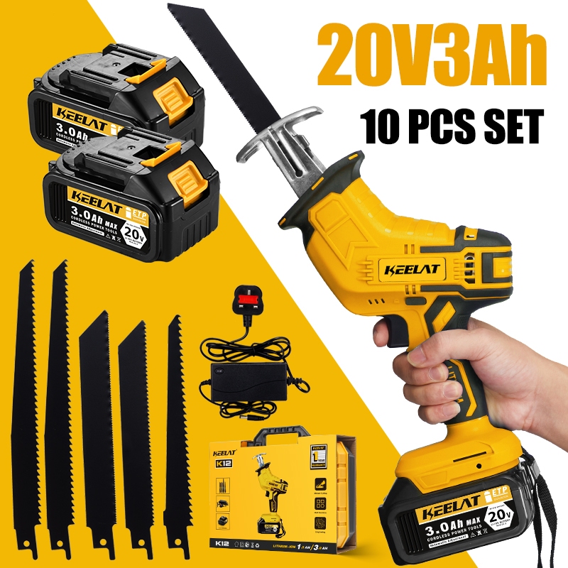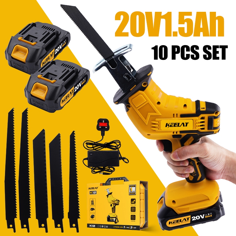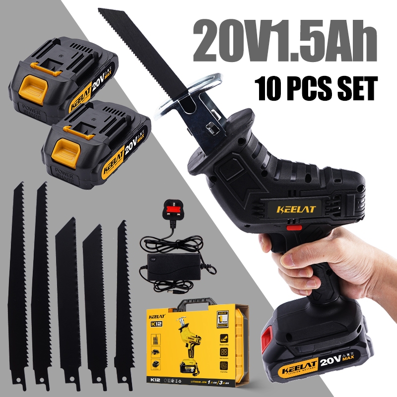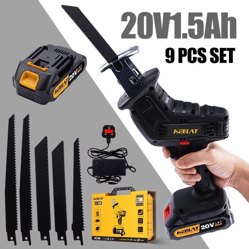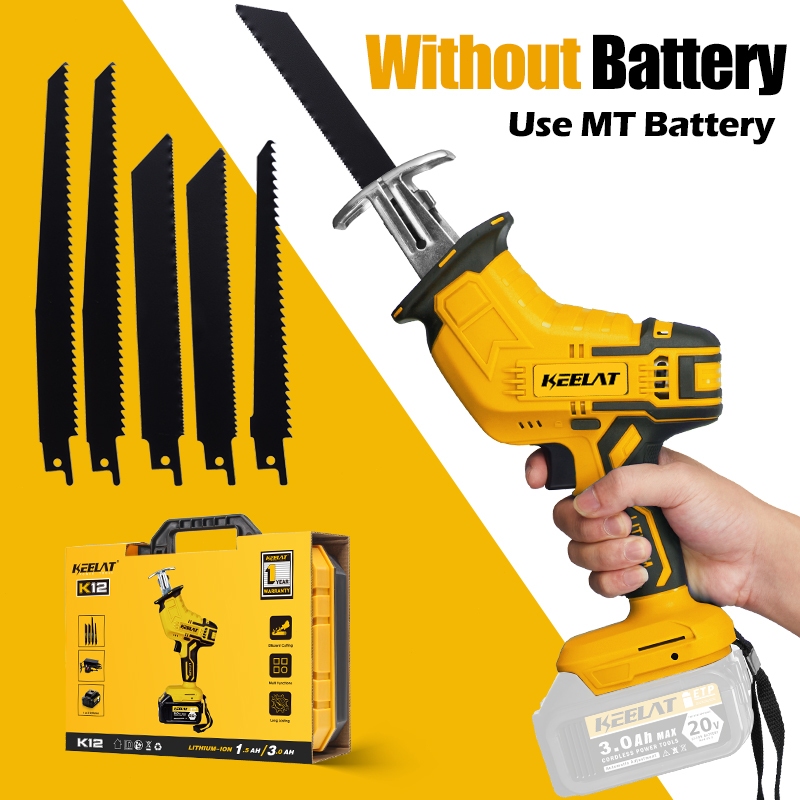 KEELAT KCRS001 Cordless Reciprocating Saw Gergaji Elektrik for Wood Metal Cutting with Battery ChainSaw Mesin Kayu Tool