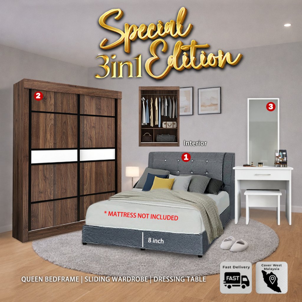 🔥QUEEN Bedroom Set🔥 Set Bilik Moden / Bedroom Set Moden/Bedroom Set Murah/Katil Queen/Bed/Divan Bed