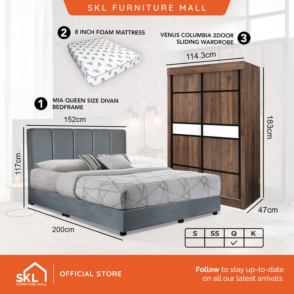 🔥READY STOCK🔥3IN1 QUEEN Bedroom Set With Mattress / Set Bilik Moden / Bedroom Set Modern /Katil Queen / Divan Bed