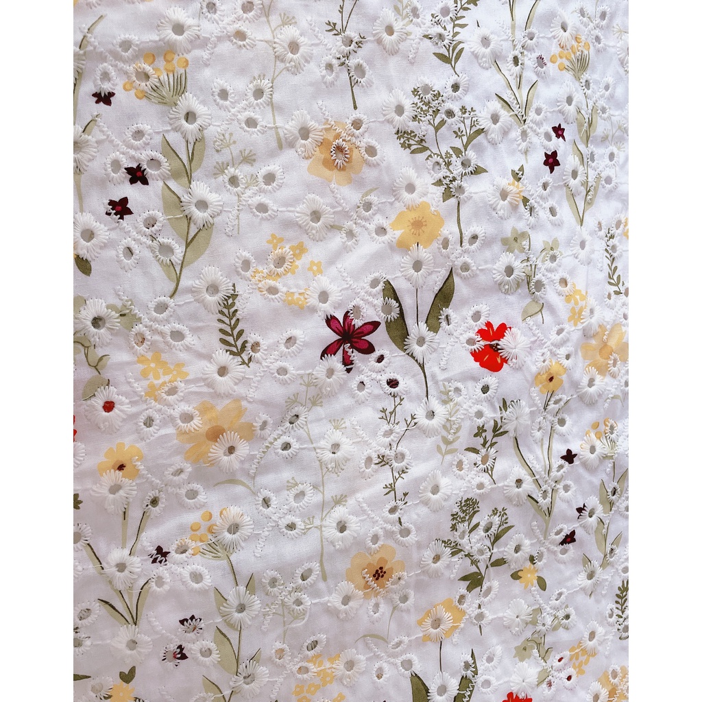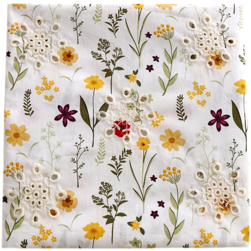 [READY STOCK] Cotton Embroidered Pure Cotton Printing Hollow Fabric Dress Shirt Clothing Fabric Tablecloth Handmade Diy