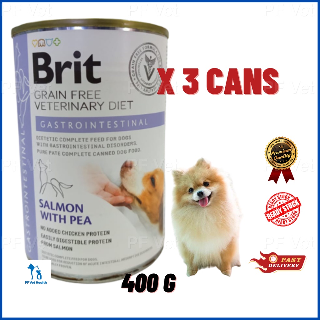 3xCANS Brit Gastrointestinal Dog Veterinary Diet Salmon and Pea | 400g | Dog Wet Food x 3 Canned Can | 护胃肠狗罐头