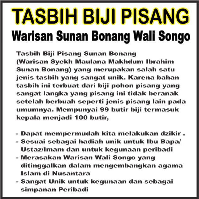 TASBIH BIJI PISANG SUNAN BONANG SOLAT ZIKIR MUSLIM ISLAM