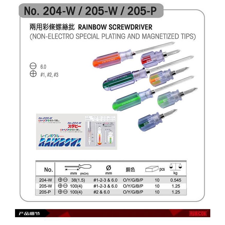 Free Shipping Double-Headed 2 Way Screwdriver 原装日本RUBICON罗宾汉 螺丝刀No.204-W 205-W两用双头两用彩条批 Pemutar Skru 2 Hala