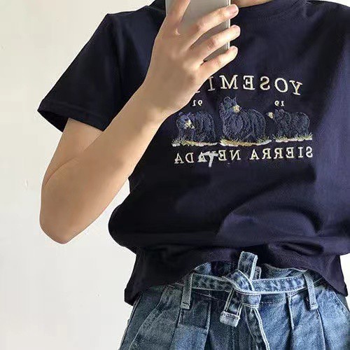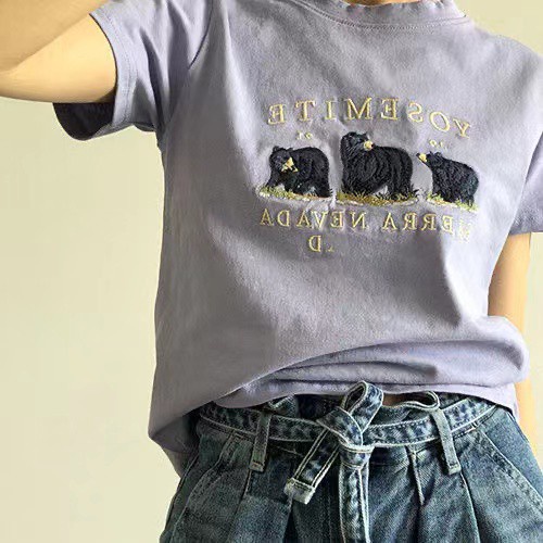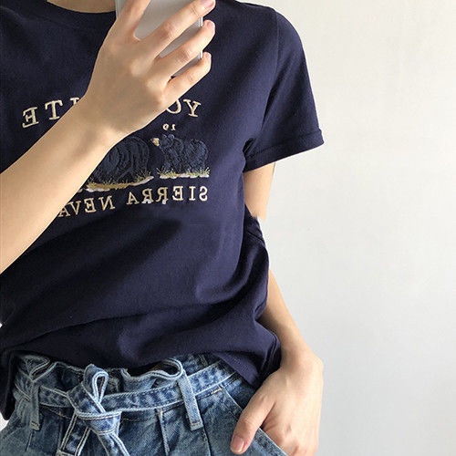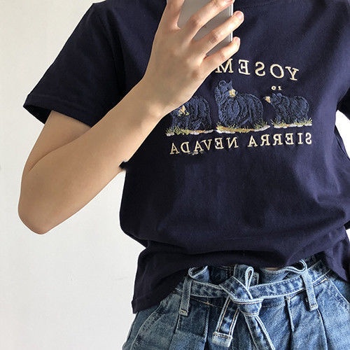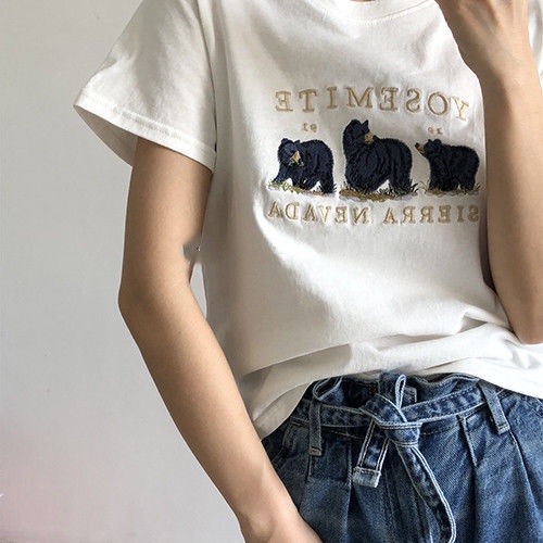 Women's summer new Korean edition cotton bear T-shirt short sleeves short style