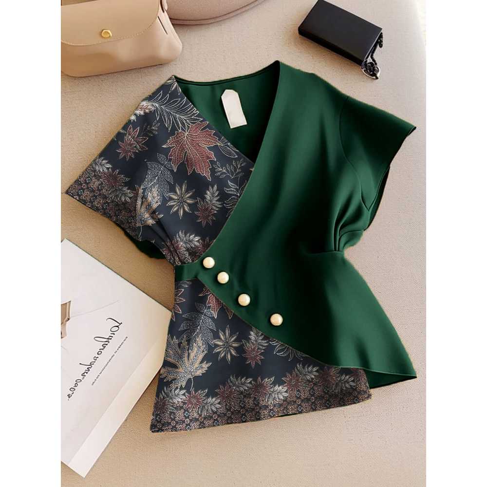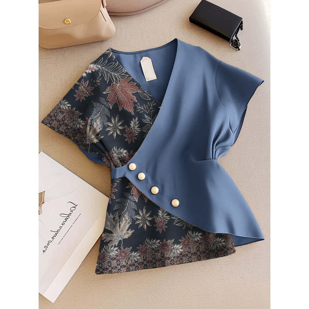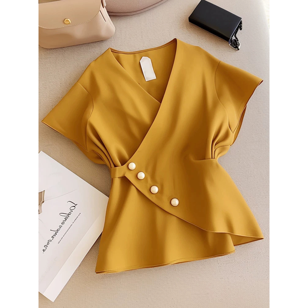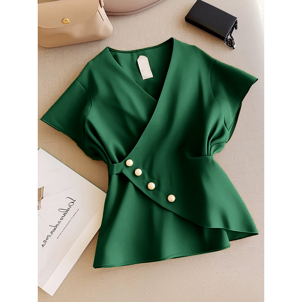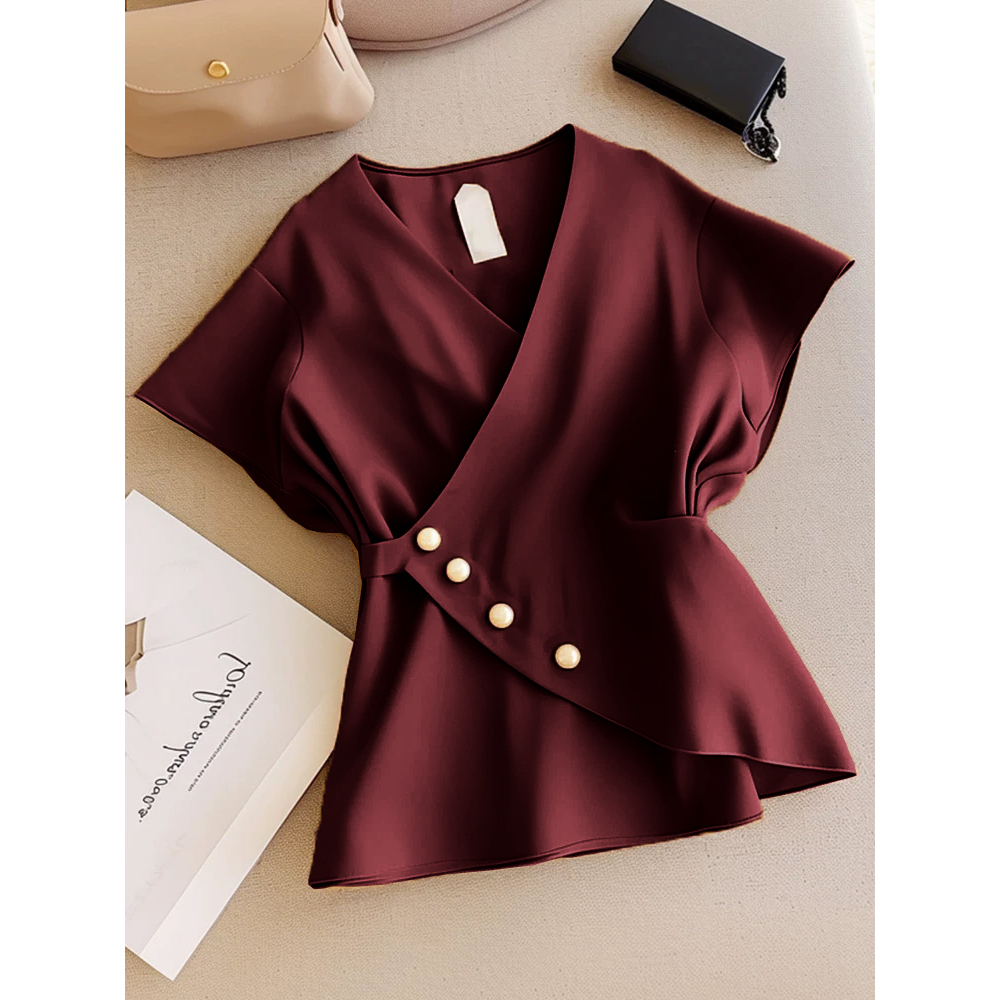 FWG Korean Style Women's Tops Casual Blouse Women's Blouse Plain Short Sleeve Top Ghaha Top