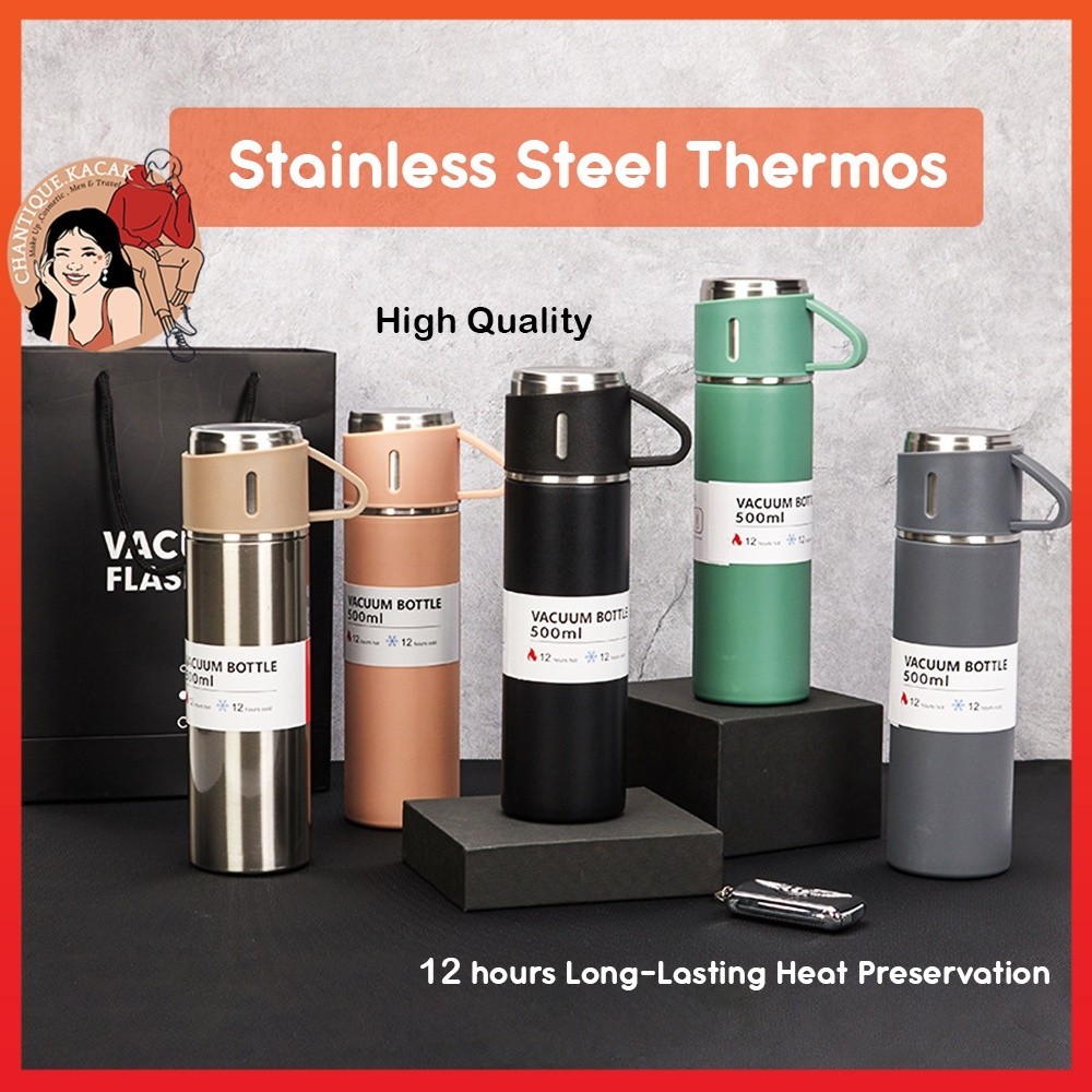 CK Thermos Vacuum Cup Set 500ml 304 Stainless Steel Water Flask Bottle High Quality Gift Travel Mug Botol Air Cawan