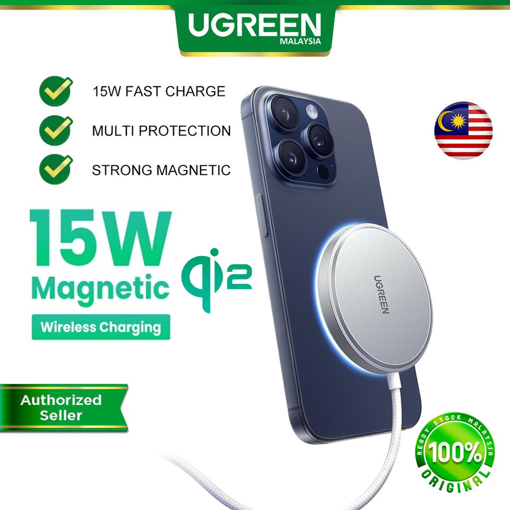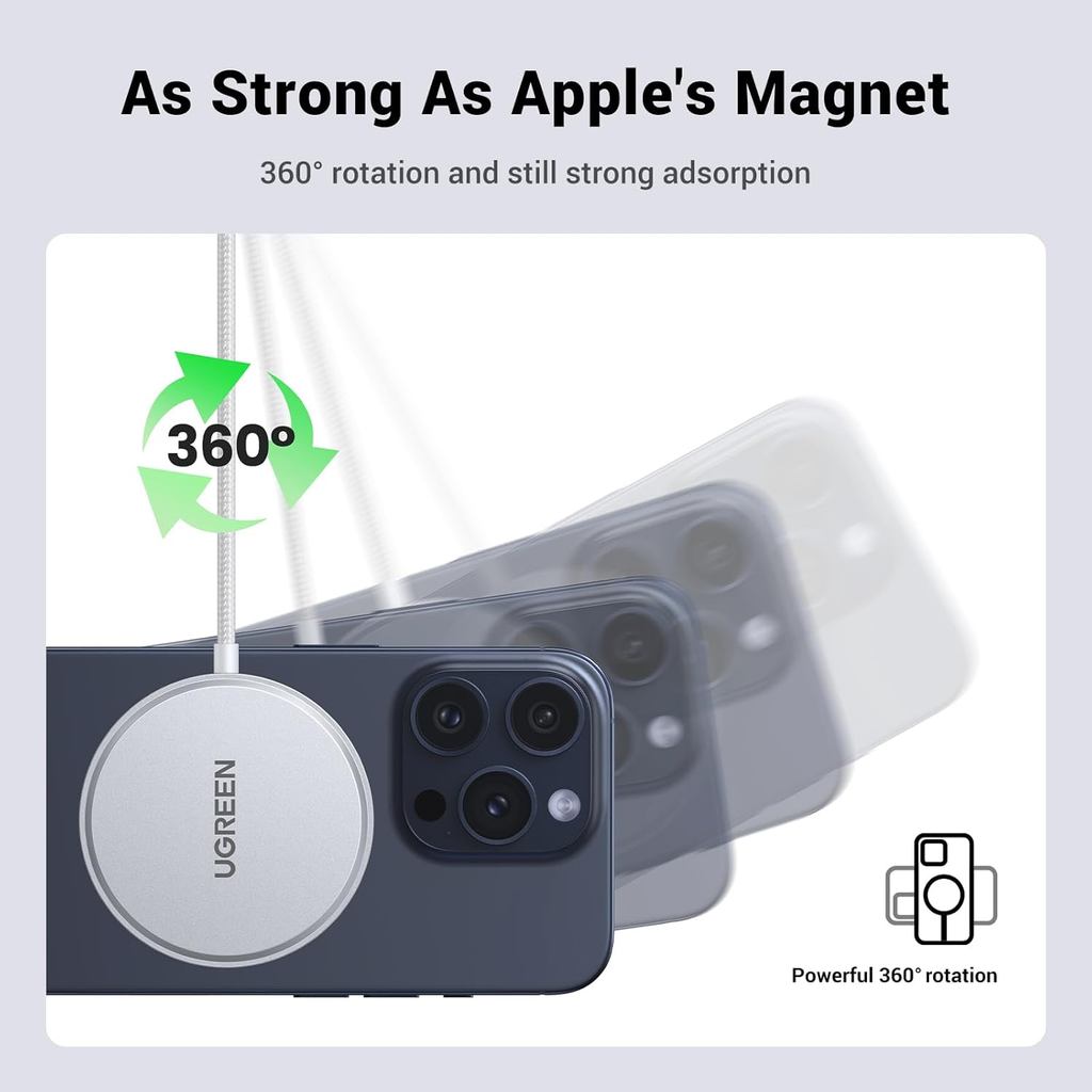 UGREEN Qi2 15W Magnetic Wireless Charger Magsafe USB-C Fast Charging Pad iPhone 17/16/15 Pro Max Samsung S25 Airpods