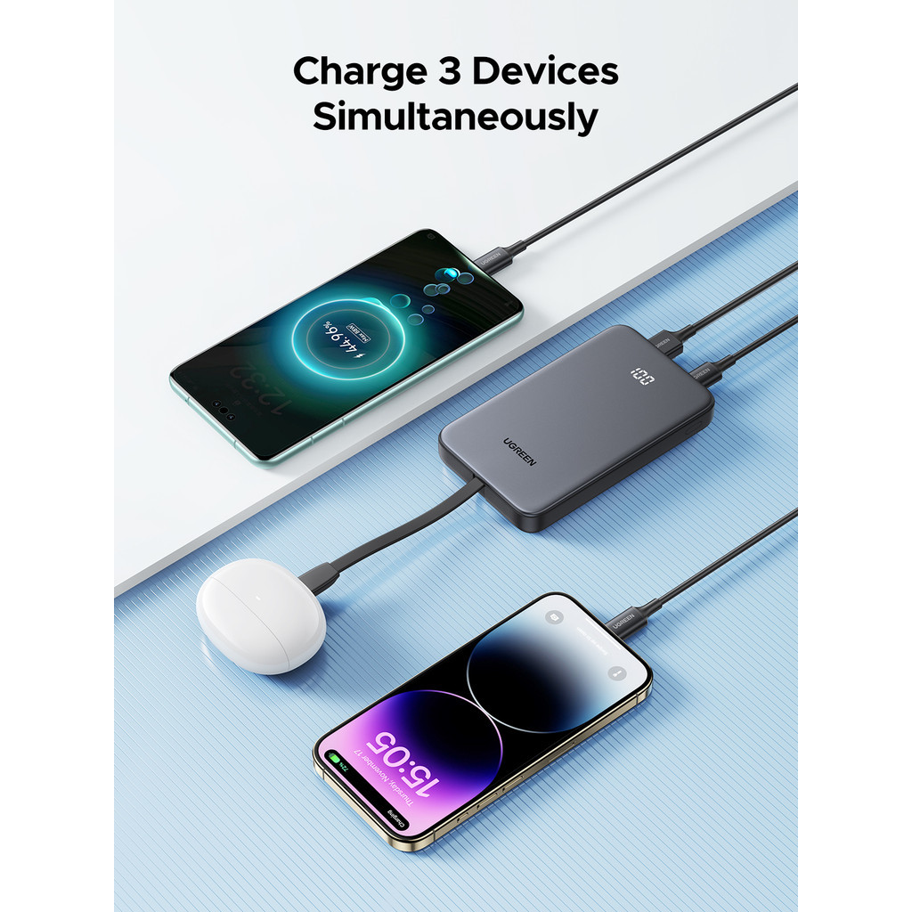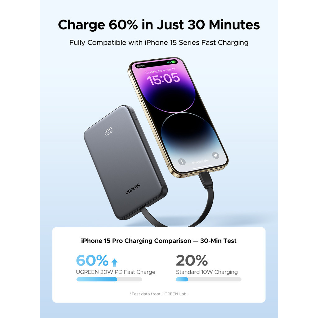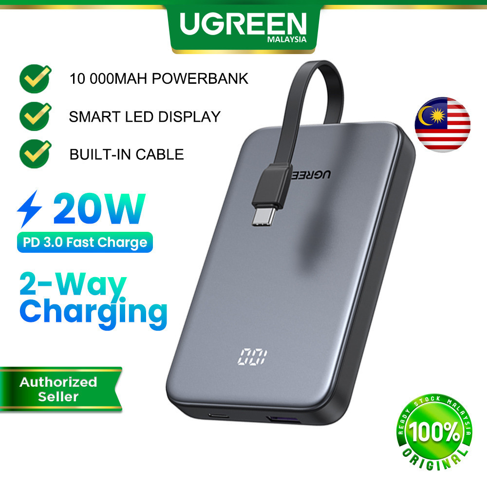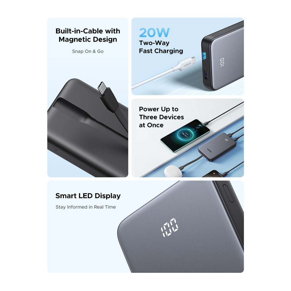 UGREEN 20W 10000mAh Powerbank Built-in Cable Smart LED Display PD Fast Charging USB C USB A Type C iPhone 17/16/15 Pro
