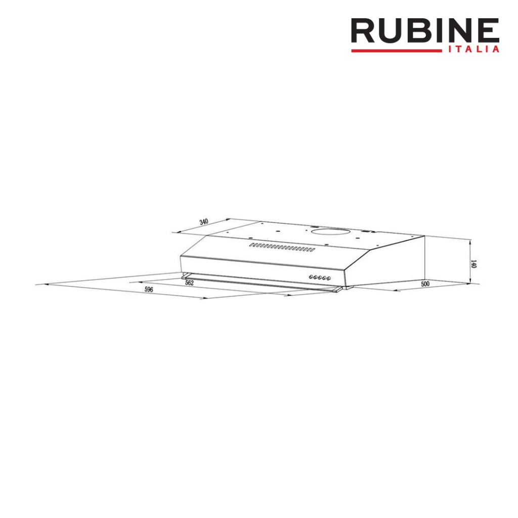 RUBINE RSH-GENOA-60BL Slim Hood 3 Extraction Speed with 5-Layer Aluminium Grease Filter