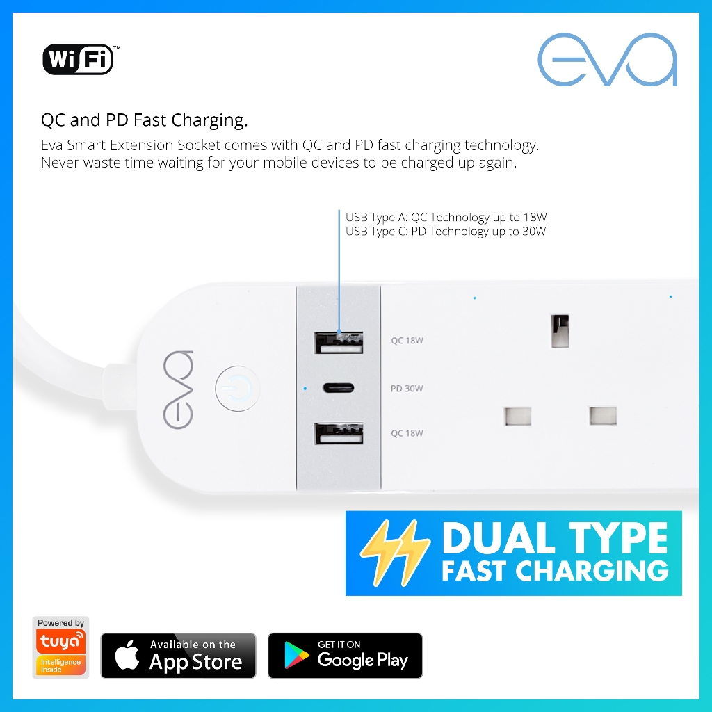 [NEW] Eva Smart Extension Socket Dual Fast Charging Works on Tuya Smart Life supports Alexa, Google, Siri, SmartThings