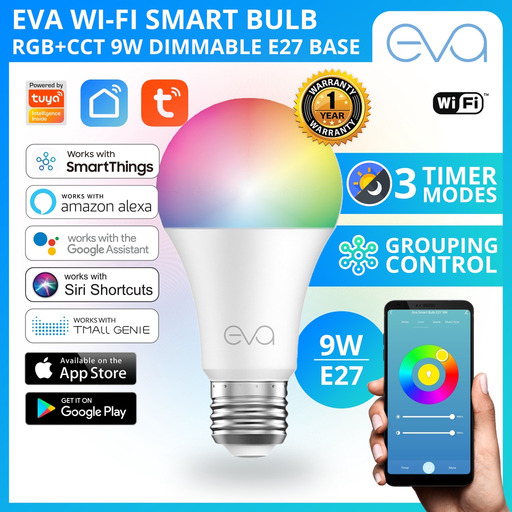 Eva Wi-Fi Smart Bulb 9W RGB + CCT E27 Dimmable Works on Tuya Smart Life App Support Alexa, Google Assistant, SmartThings