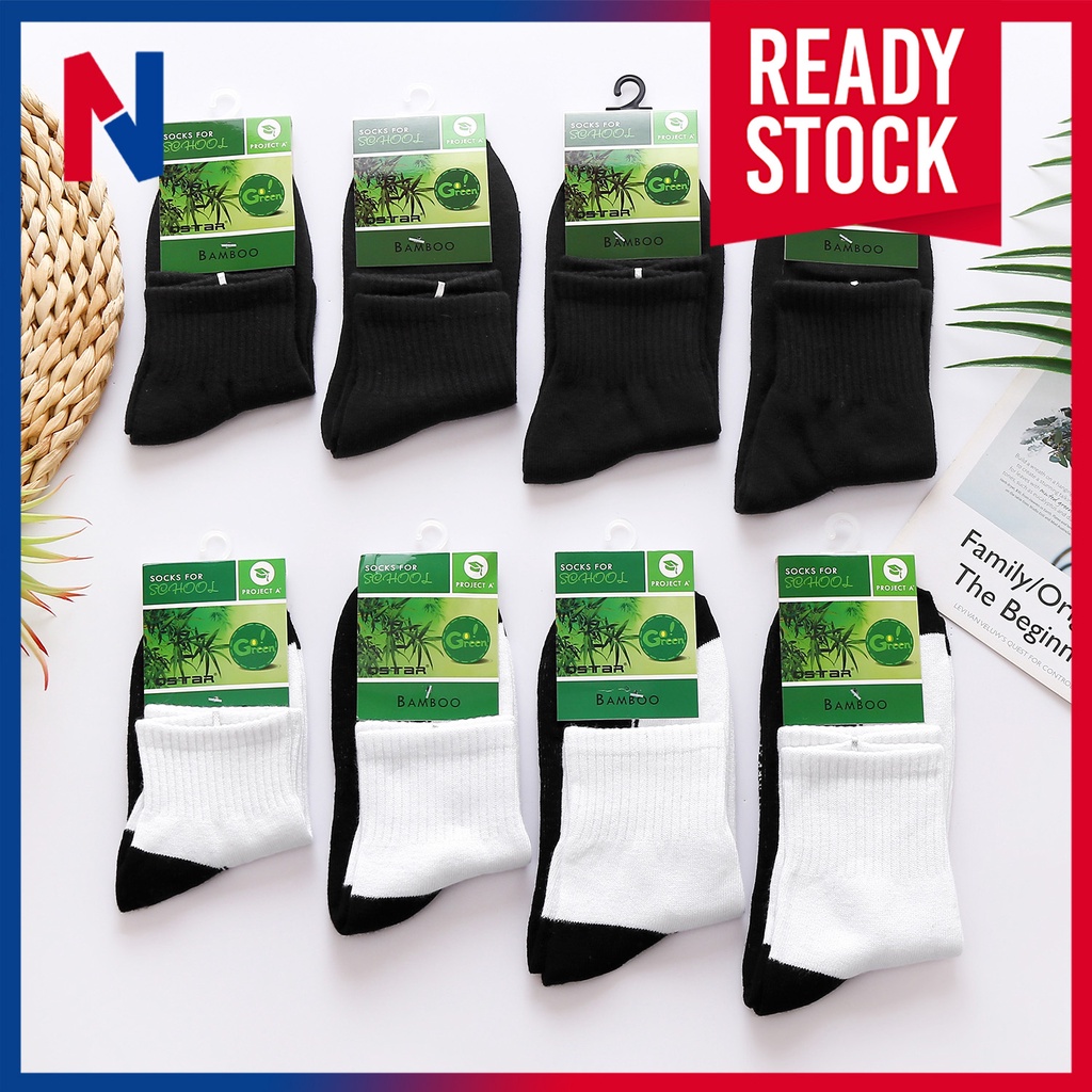 (1 PAIR / PASANG) QSTAR Bamboo Fibre Stokin Sekolah Putih Dengan Tapak Hitam | Black School Socks