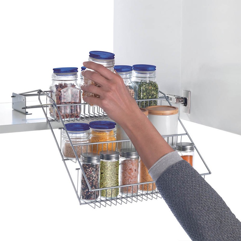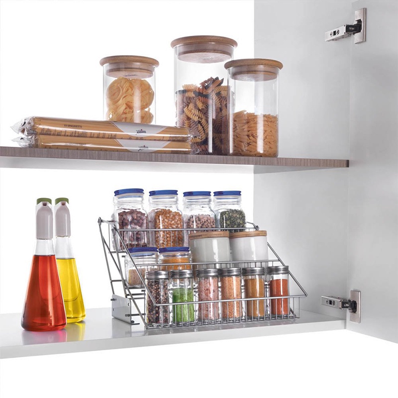 Metal 3-Tier Pull Down Spice Rack - Easy Reach Retractable Large Capacity Kitchen Storage Shelf Organizer for Cabinet