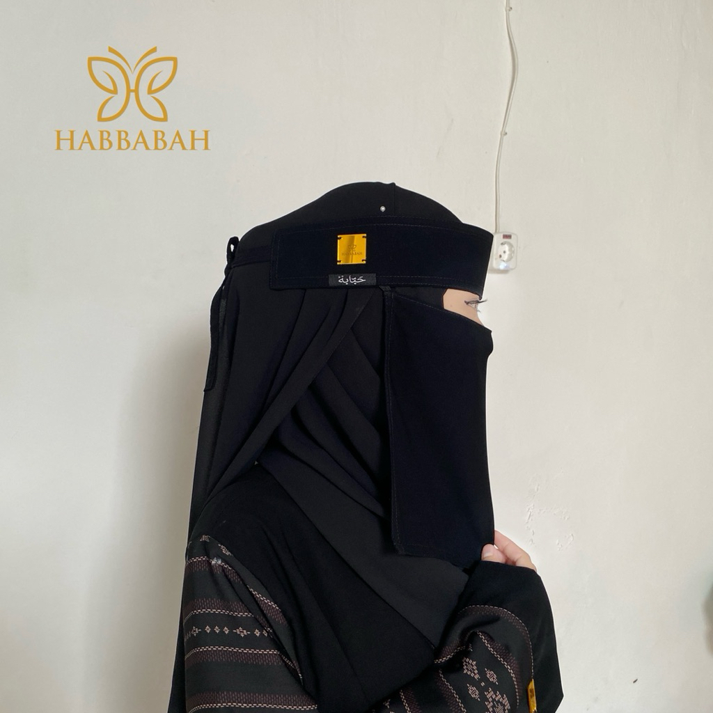 NIQAB SAUDI DEEP BLACK HABBABAH |Niqob Bandana Cadar Yemen Niqab Jetblack Short Acrylic Plate Gold Square/ Box