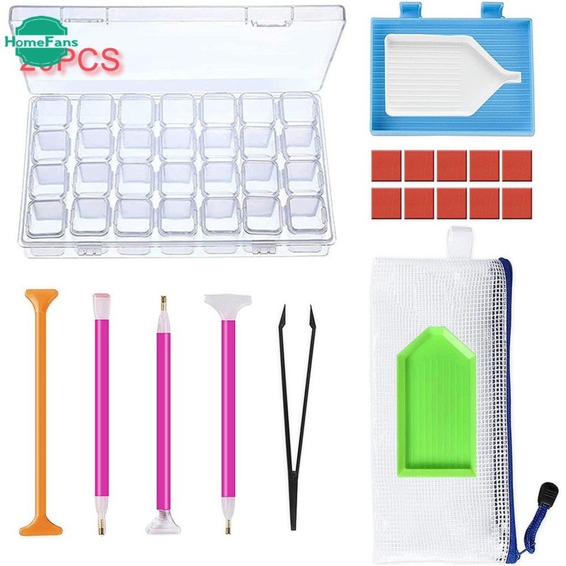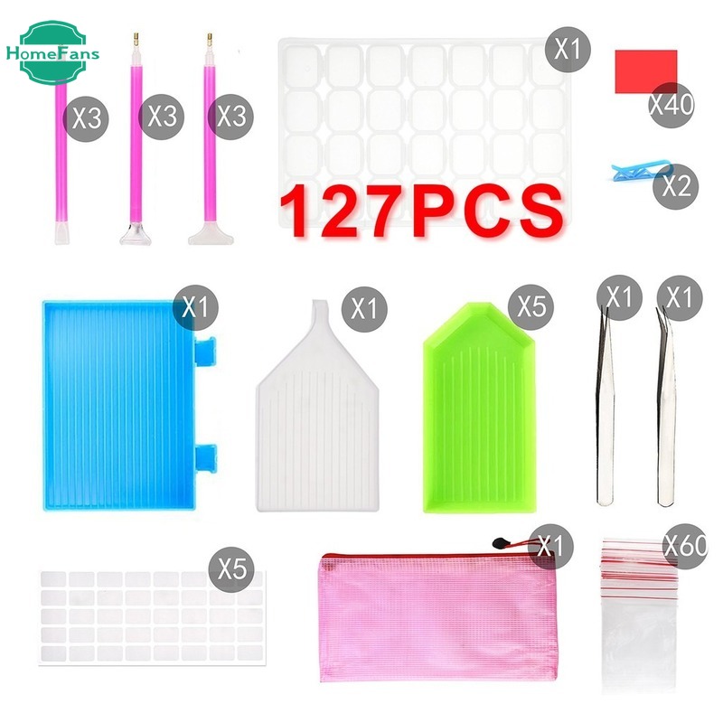 【HF Ready Stock】11/20/45/127Pcs Diamond Painting Kit Set Tools with Grid Storage Sticky Pen Tweezers for Beginners raya EID Mubarak